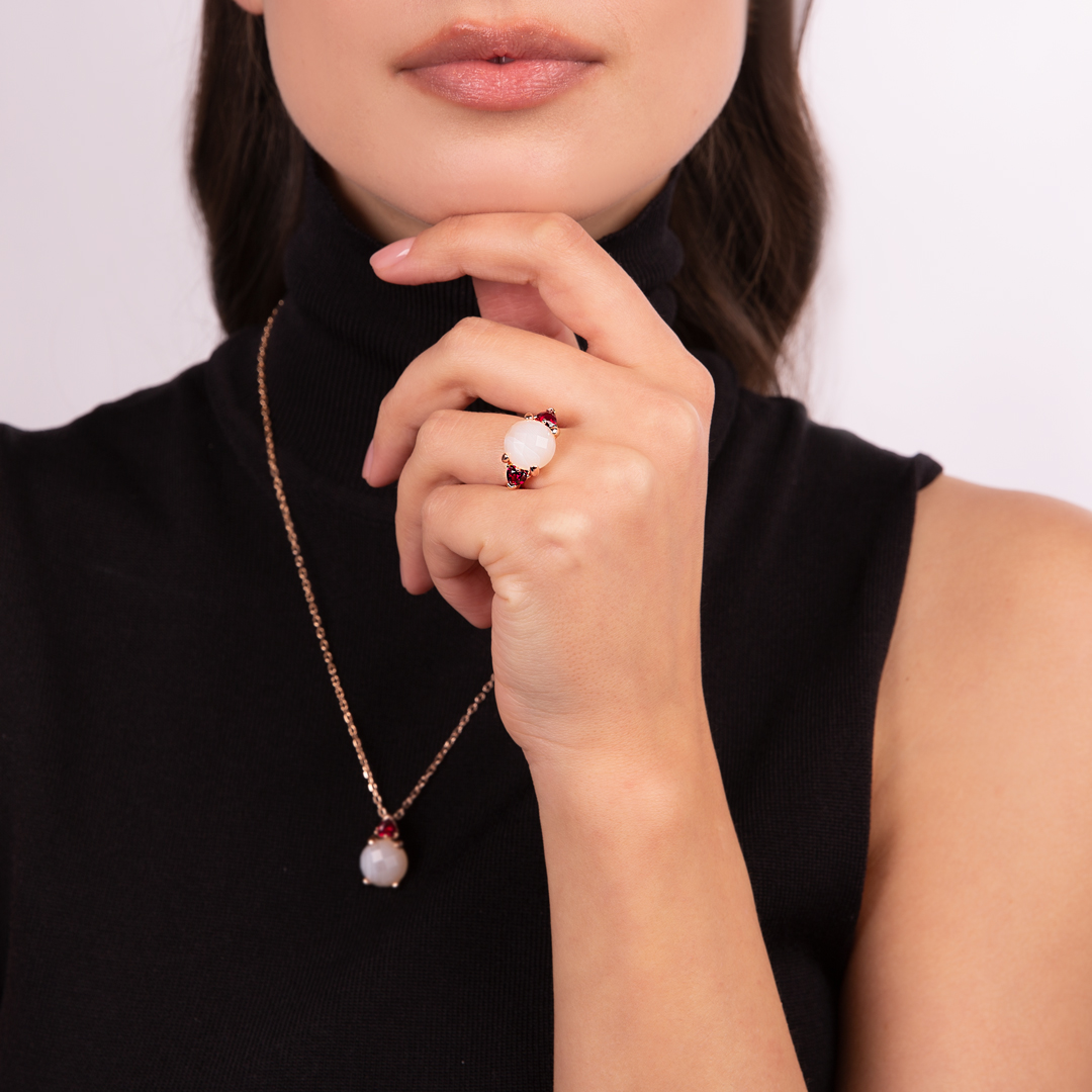 Anello cocktail Bronzallure realizzato su base Golden Rosè, placcato oro rosa 18kt, impreziosito da una pietra naturale...