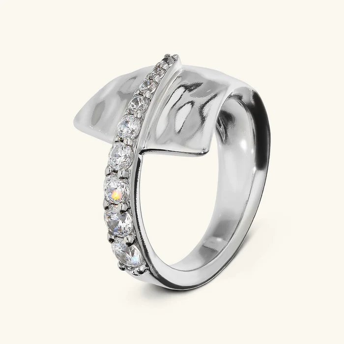 Anello Donna Etrusca Contrarié Martellato con Pavé di Cubic Zirconia