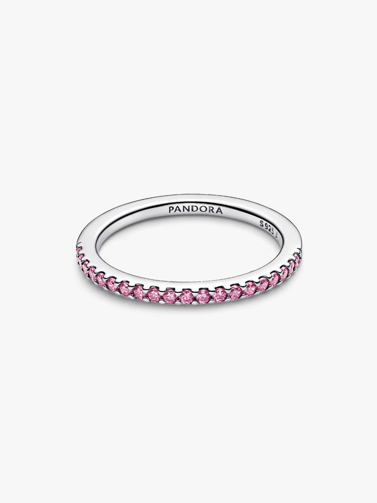 Dona al tuo look un tocco luminoso e delicato con questo anello decorato da una fila di pietre di zirconia cubica rosa sull'esterno della metà anteriore. Indossalo da solo o con altri gioielli decorati da pavé per un look coordinato.