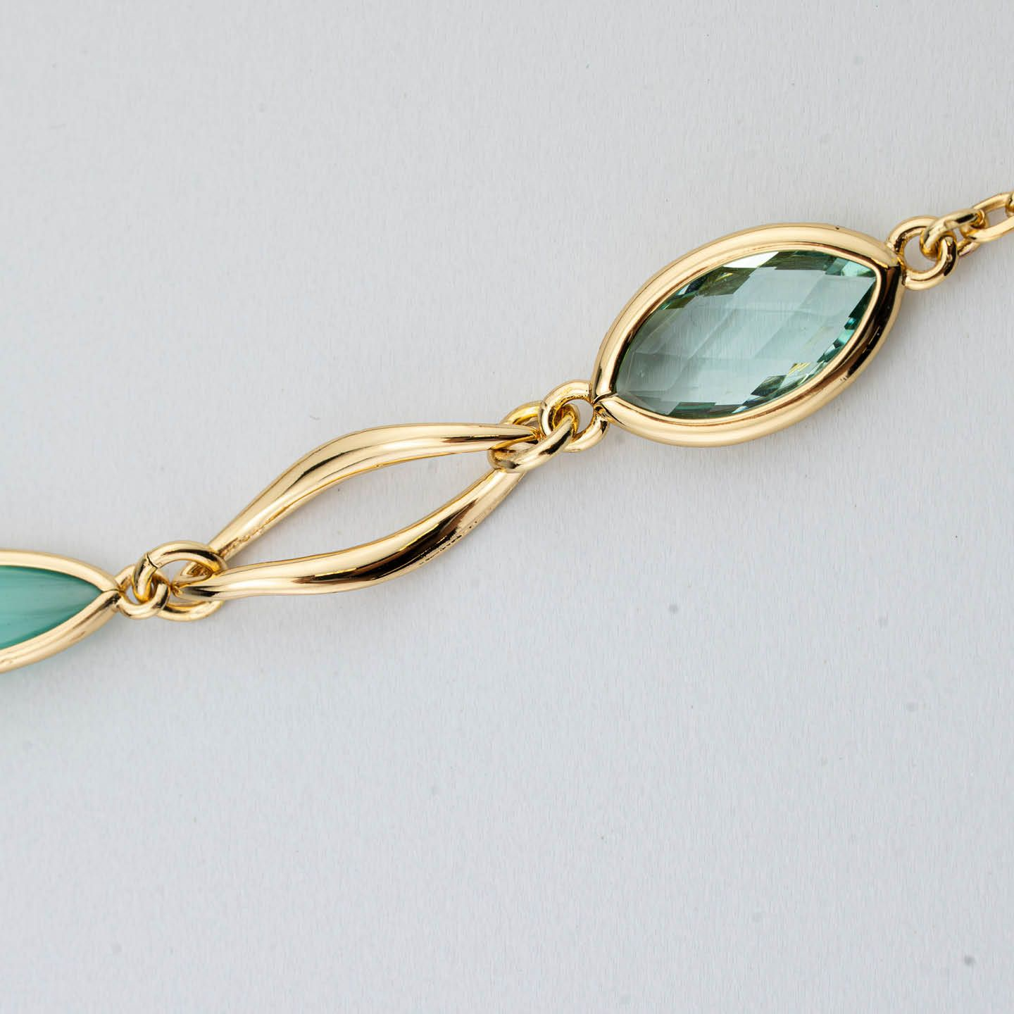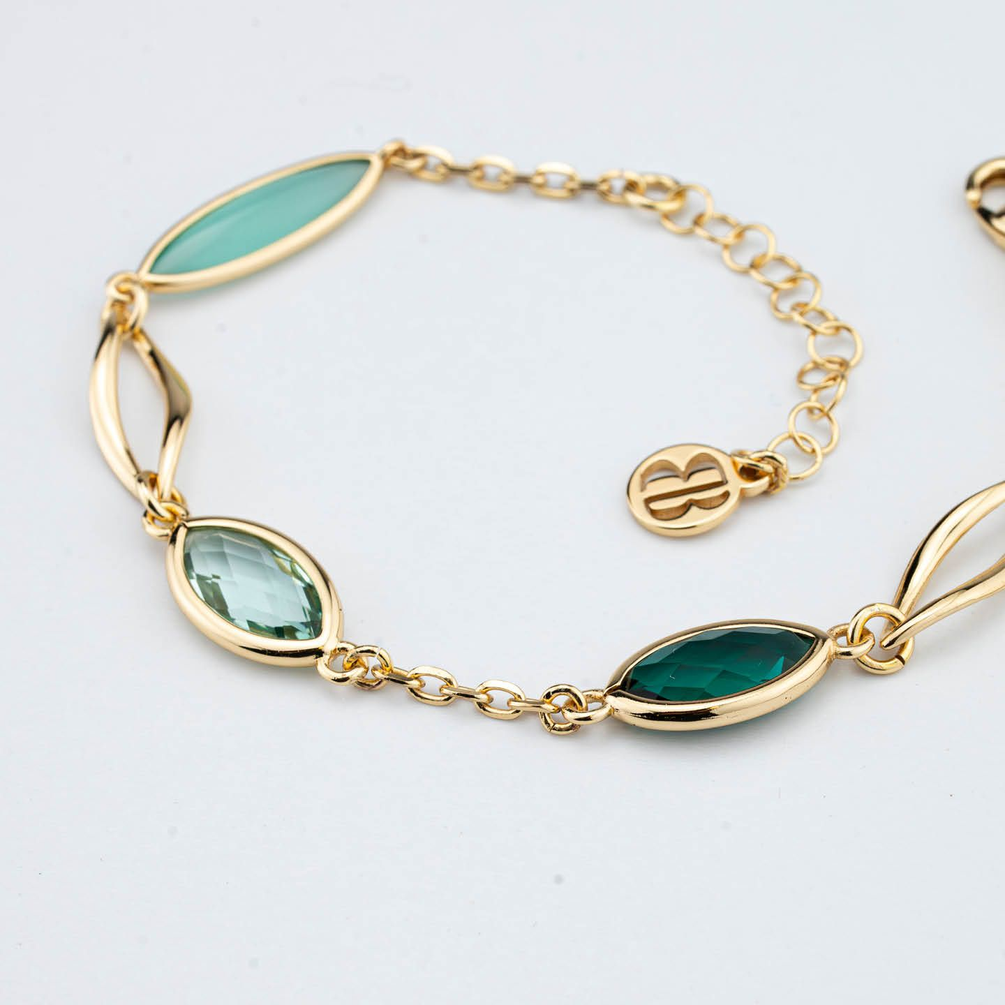 Bracciale Donna Boccadamo Dorato con Cristalli Verde chiaro, Verde scuro e Profili a Forma di Foglie con Effetto Torchon