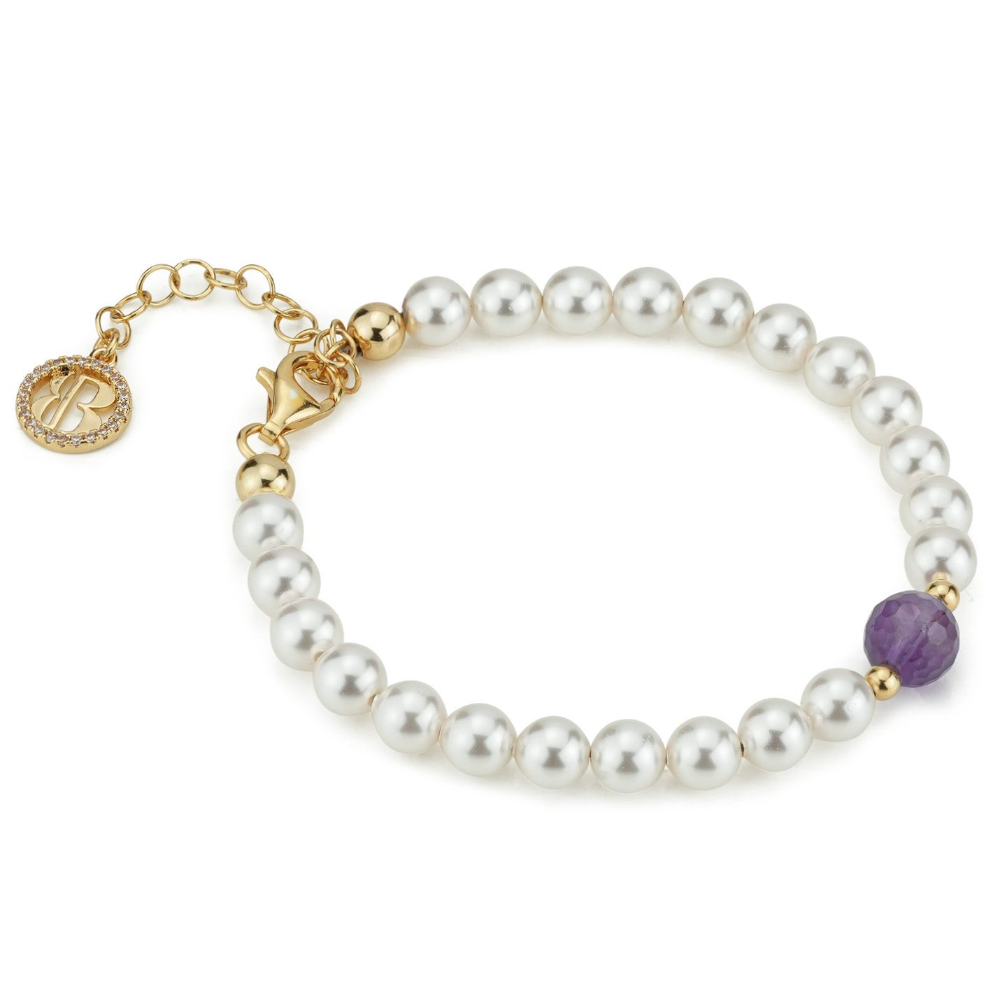 Bracciale Donna Boccadamo Placcato Oro Giallo con Filo di Perle Medie, Boules e Ametista Centrale