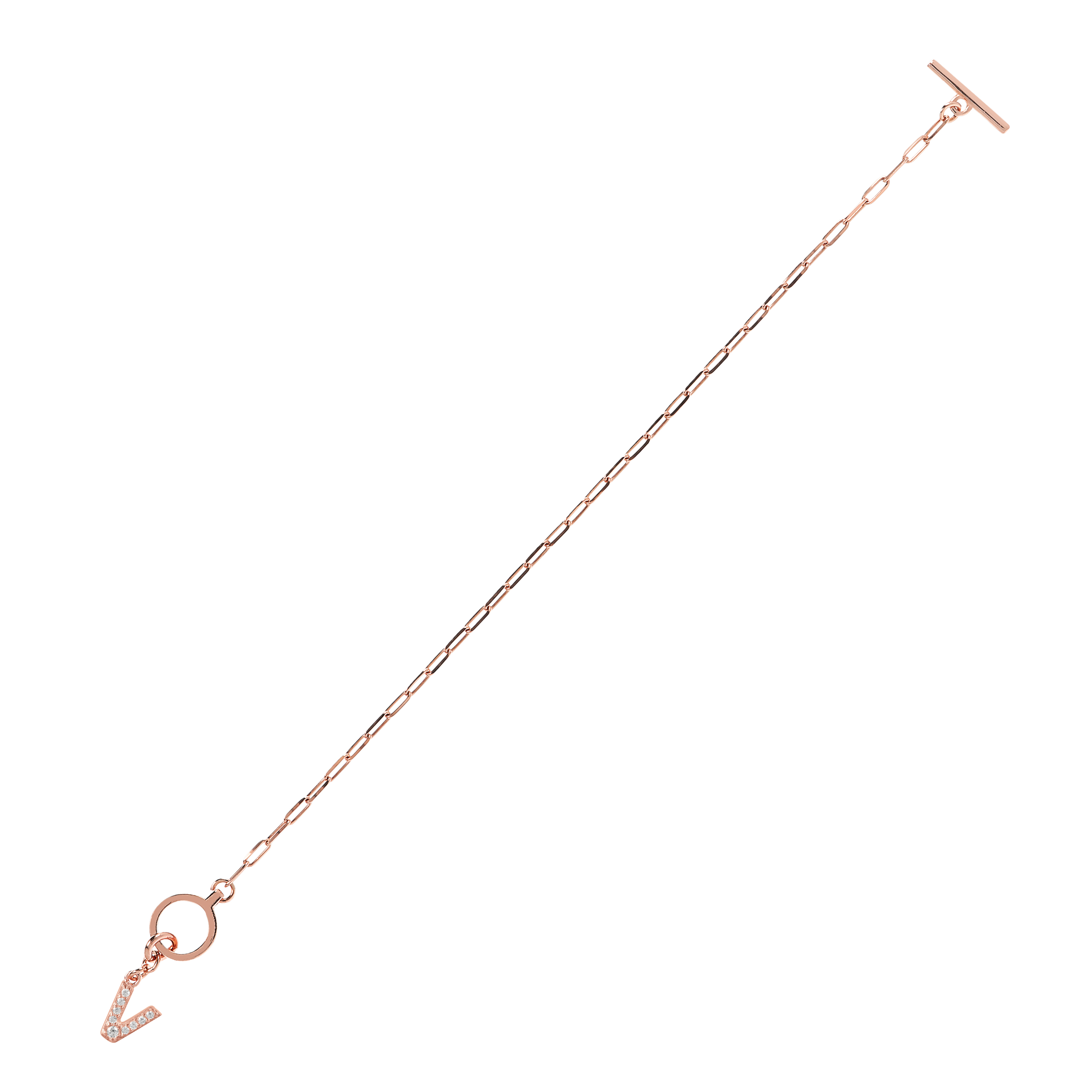 Bracciale Bronzallure realizzato in lega Golden Rosè, placcato oro rosa 18kt, con catena forzatina allungata paperclip e pendente lettera in pavè di cubic zirconia, qualità luminosa