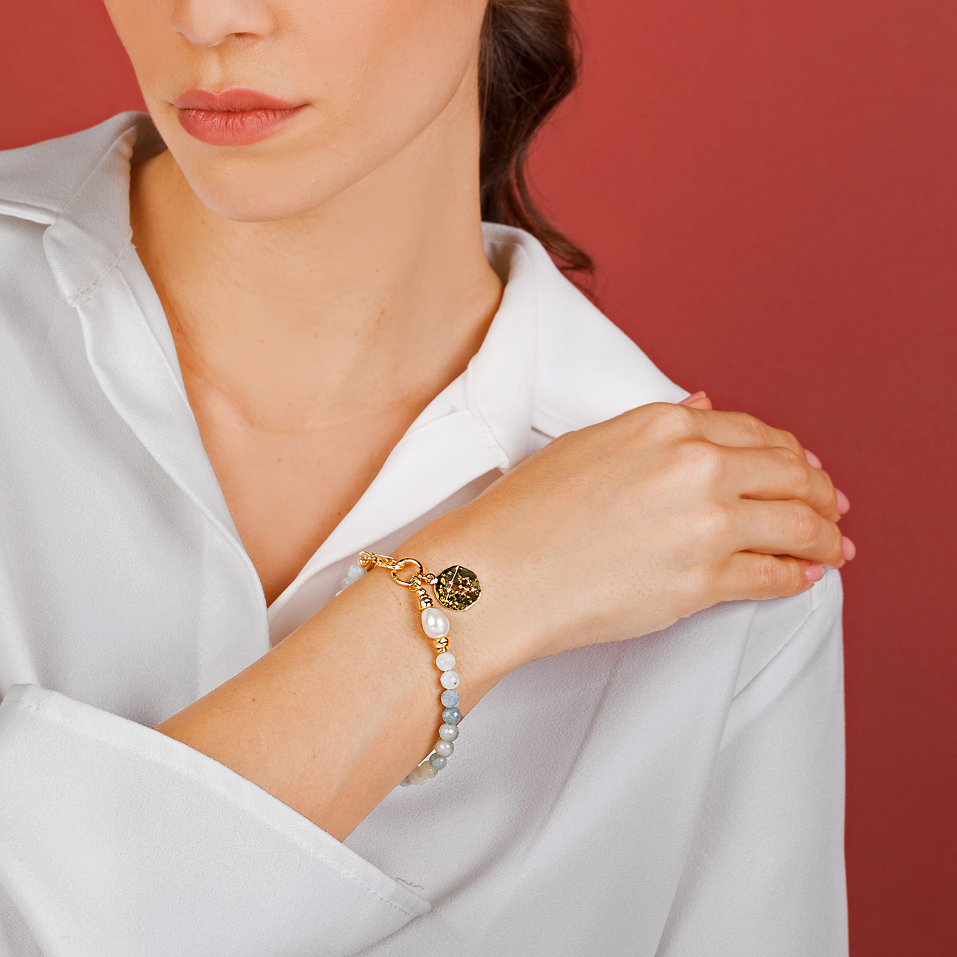 Bracciale Donna Etrusca con Perla E Pietre Naturali