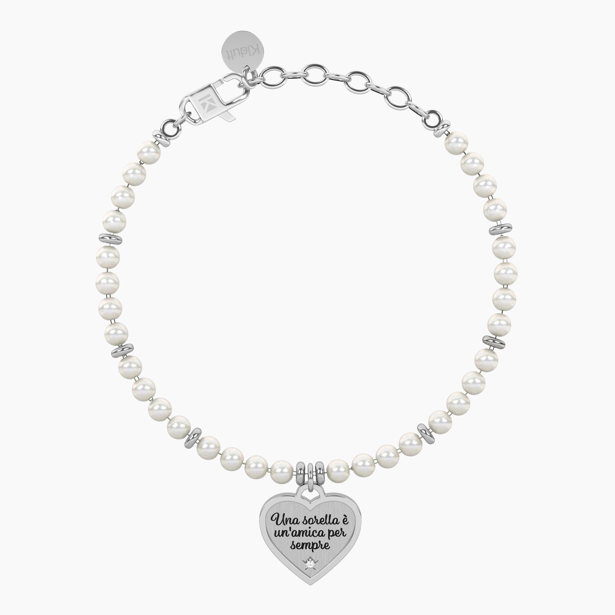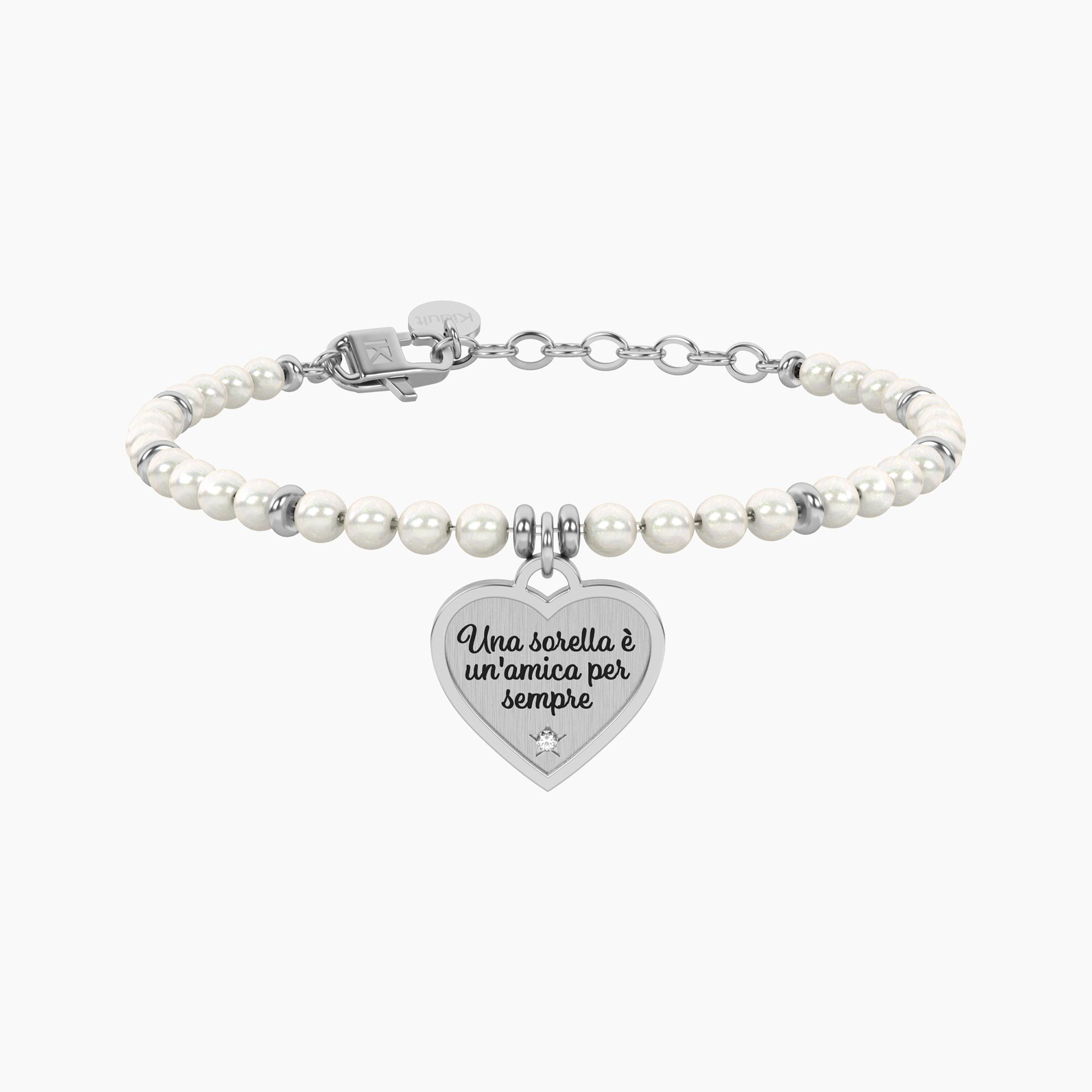 Bracciale Donna Kidult Family Perle con Ciondolo Cuore per Sorella