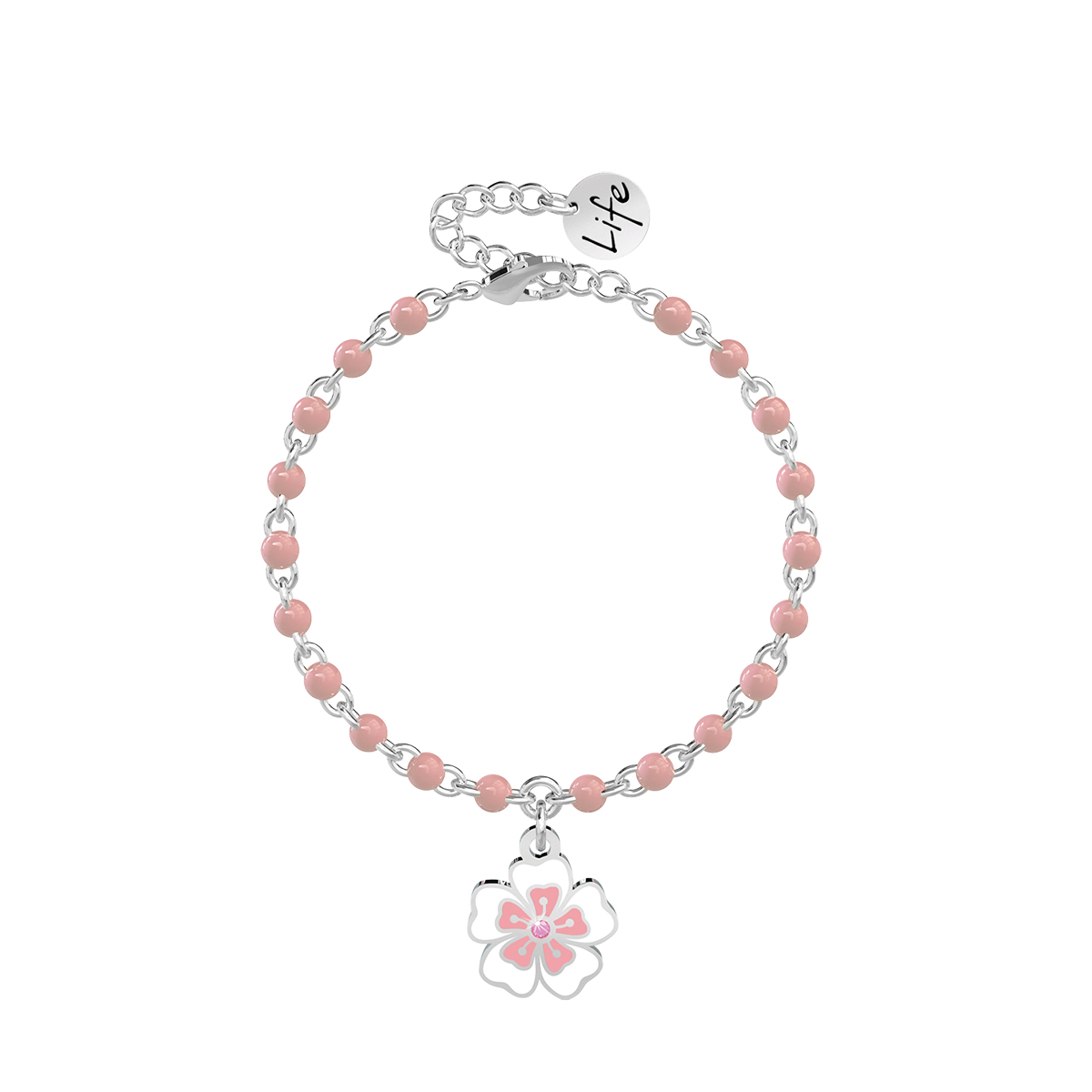 Bracciale Donna Kidult Nature con Sfere Rosa e Fiore Smaltato