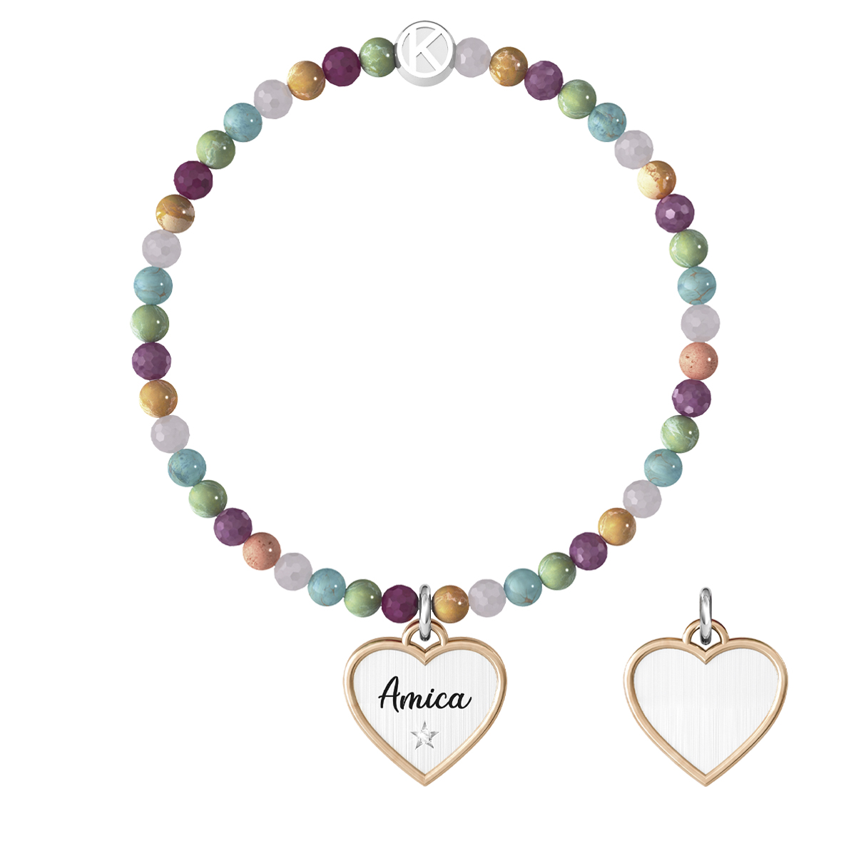 Bracciale Elastico Donna Kidult Friendship con Scritta Amica e Pietre Multicolor