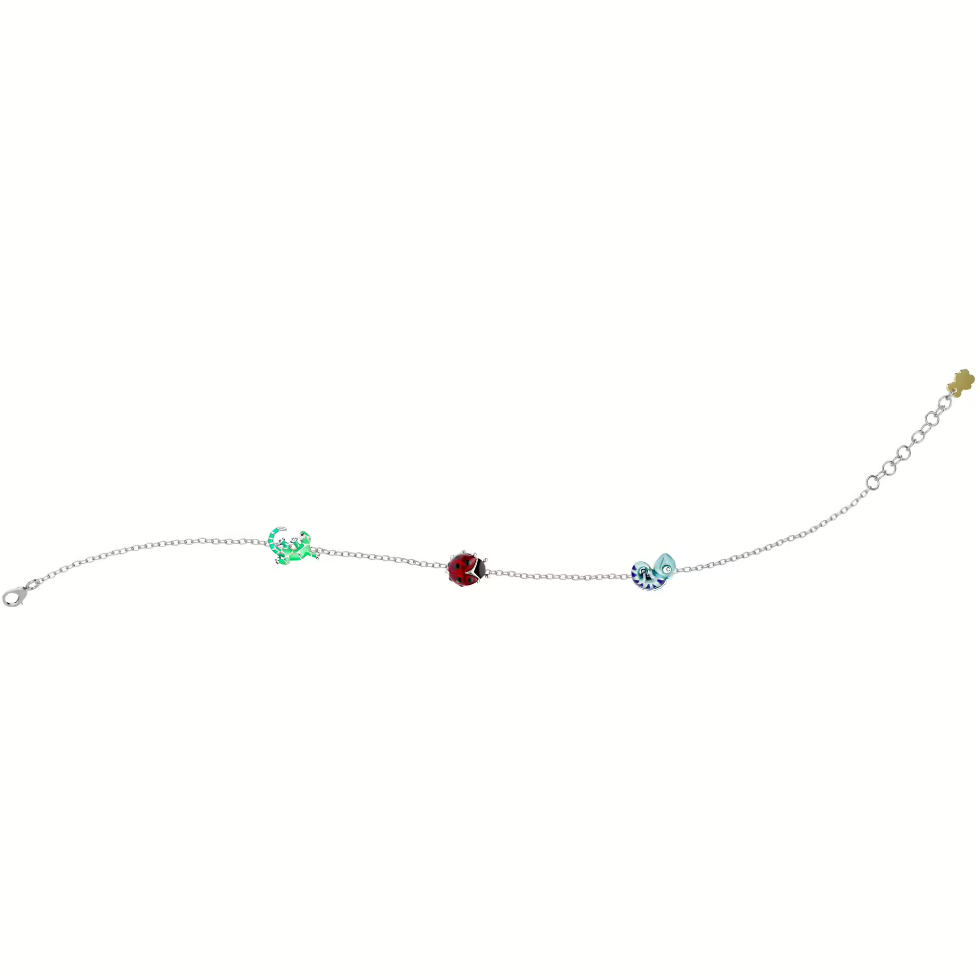 Bracciale Nanan in Argento con Lucertolina, Coccinella e Camaleonte Smaltati