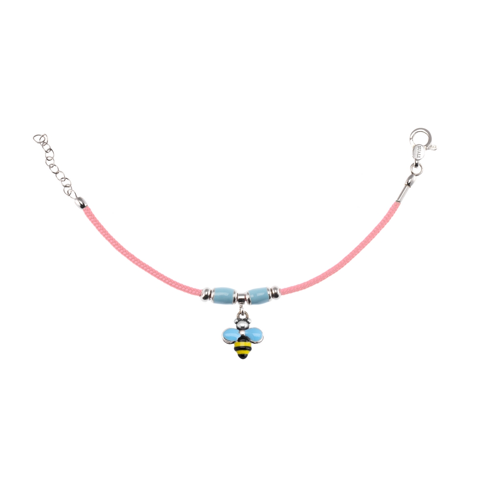 Bracciale Suali Kids Cordoncino Rosa Riporti Azzurri e Charm Ape