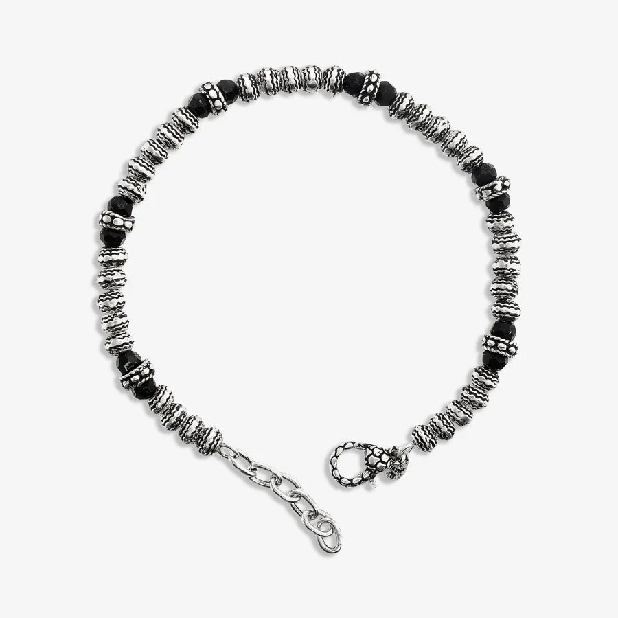 Bracciale Uomo Albert M in Argento 925 con Rondelle Lavorate e Onice Nero