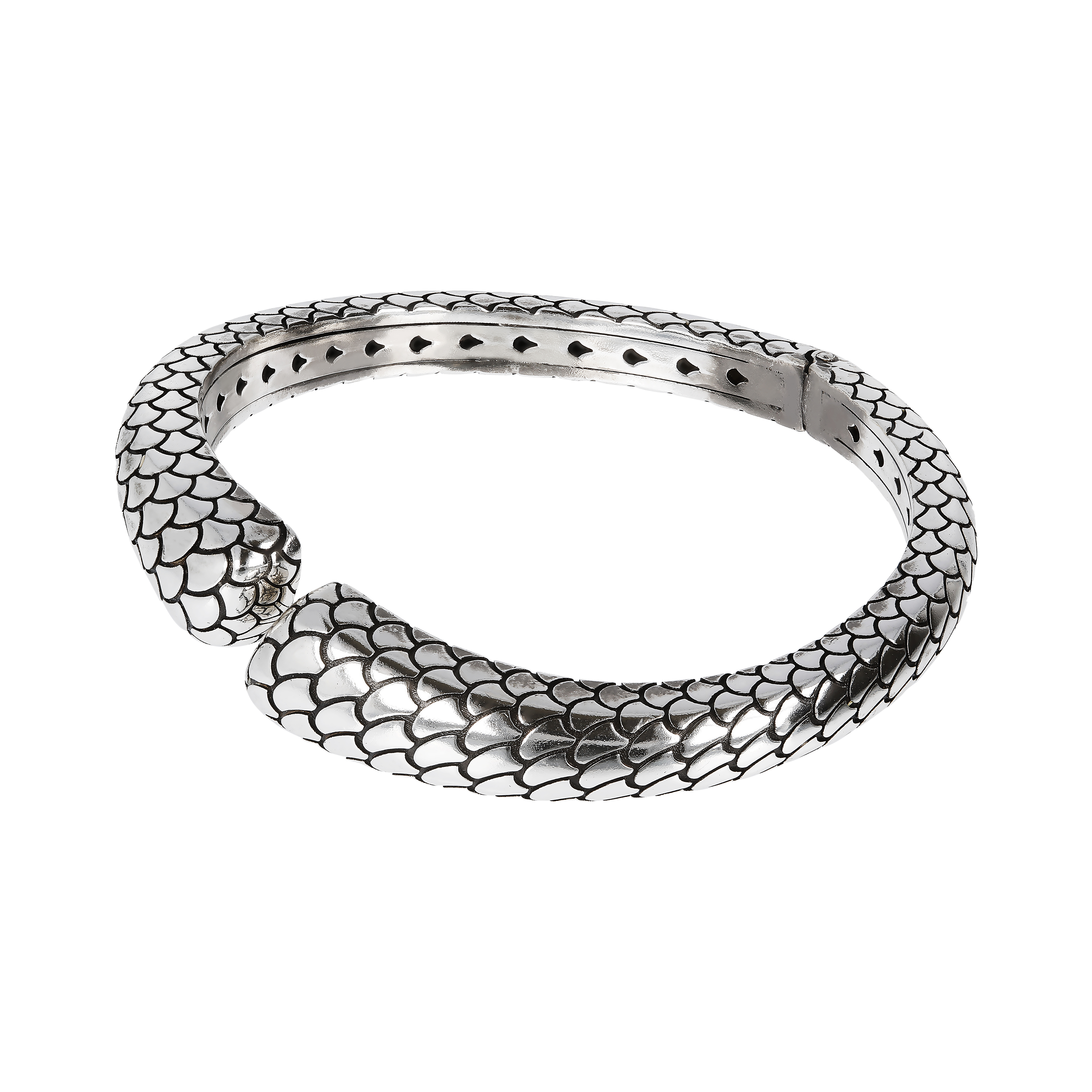 Bracciale rigido donna Albert M. realizzato su base di argento 925 dal design contrarié con texture sirena.