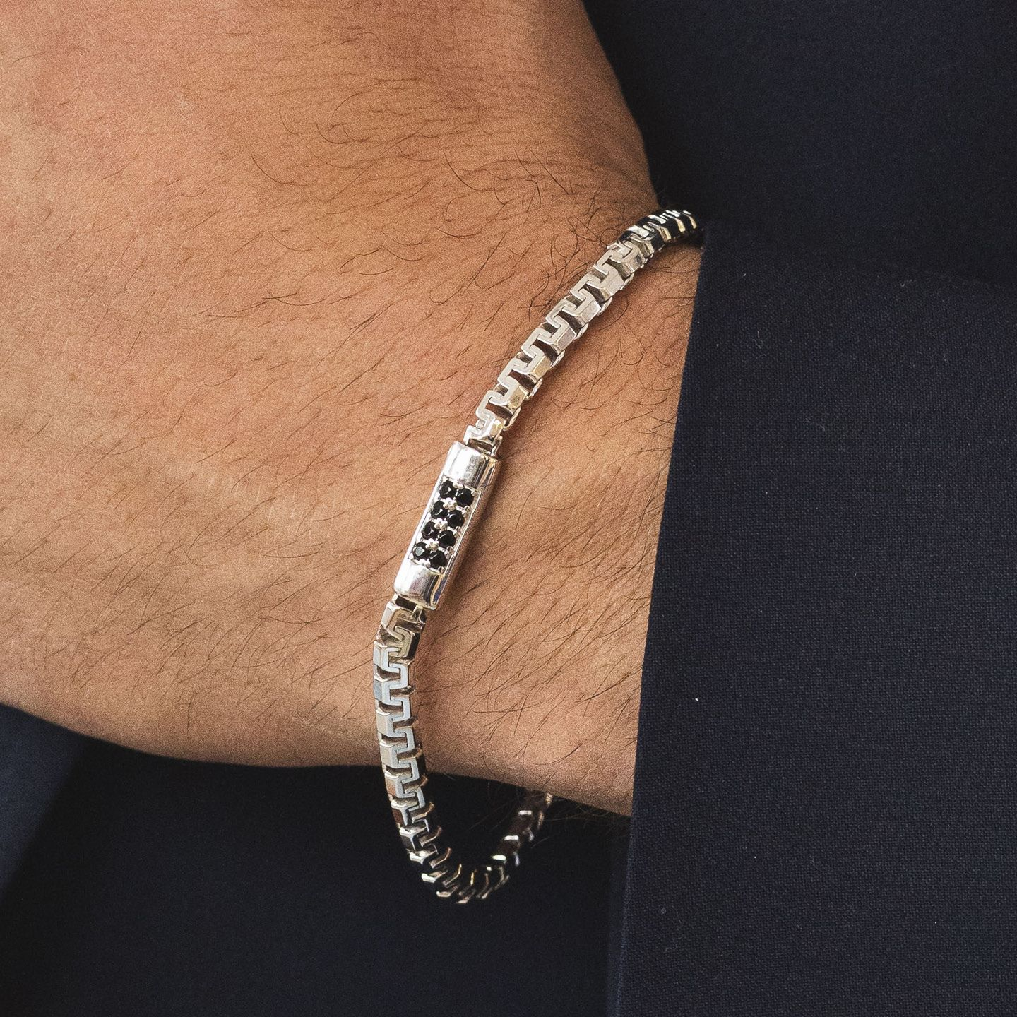 Bracciale Uomo Boccadamo a Maglia Cubica Fantasia con Zirconi Neri Centrali e Firma