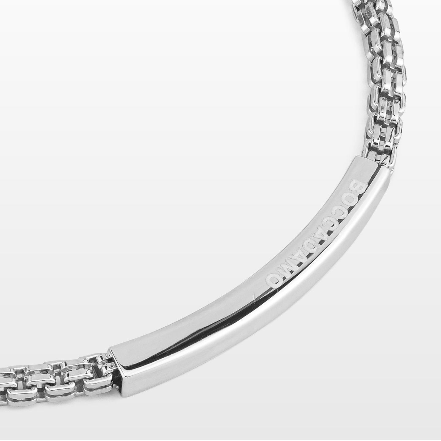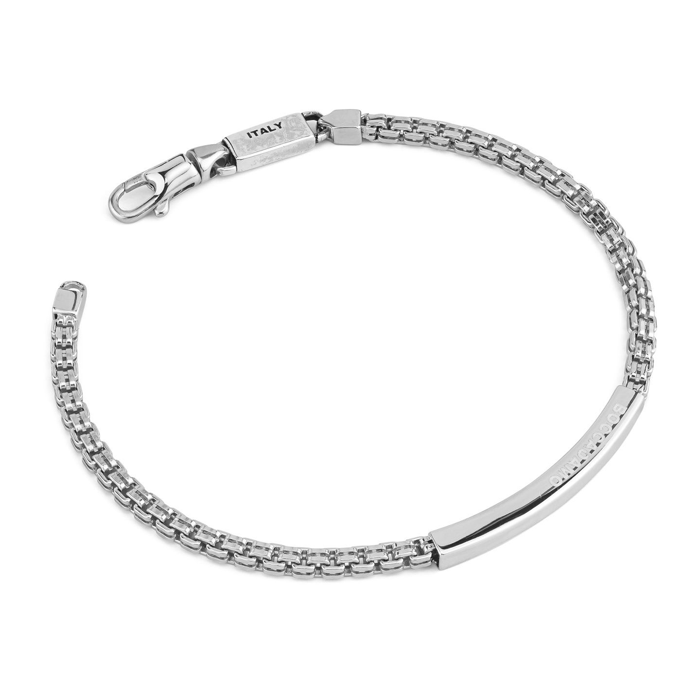 Bracciale Uomo Boccadamo a Maglia Quadrata Rigata con Placca Centrale e Incisione