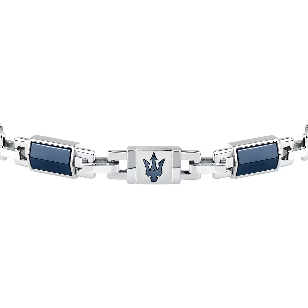 Bracciale Uomo Maserati Ceramic in Acciaio con Inserti in Ceramica Blu e Logo Blu
