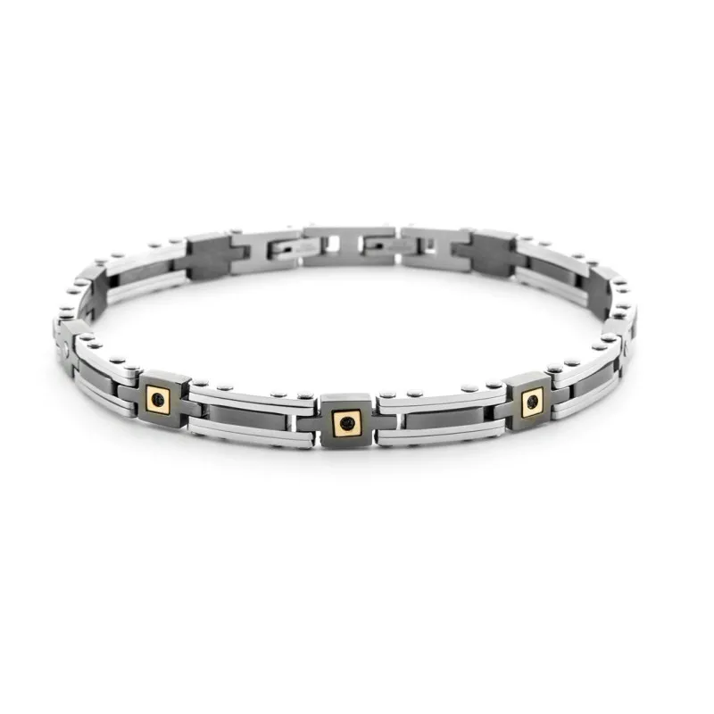 Bracciali Uomo Paciotti in Acciaio Pvd Gun, Elementi in Oro 18 Kt E Spinelli Neri