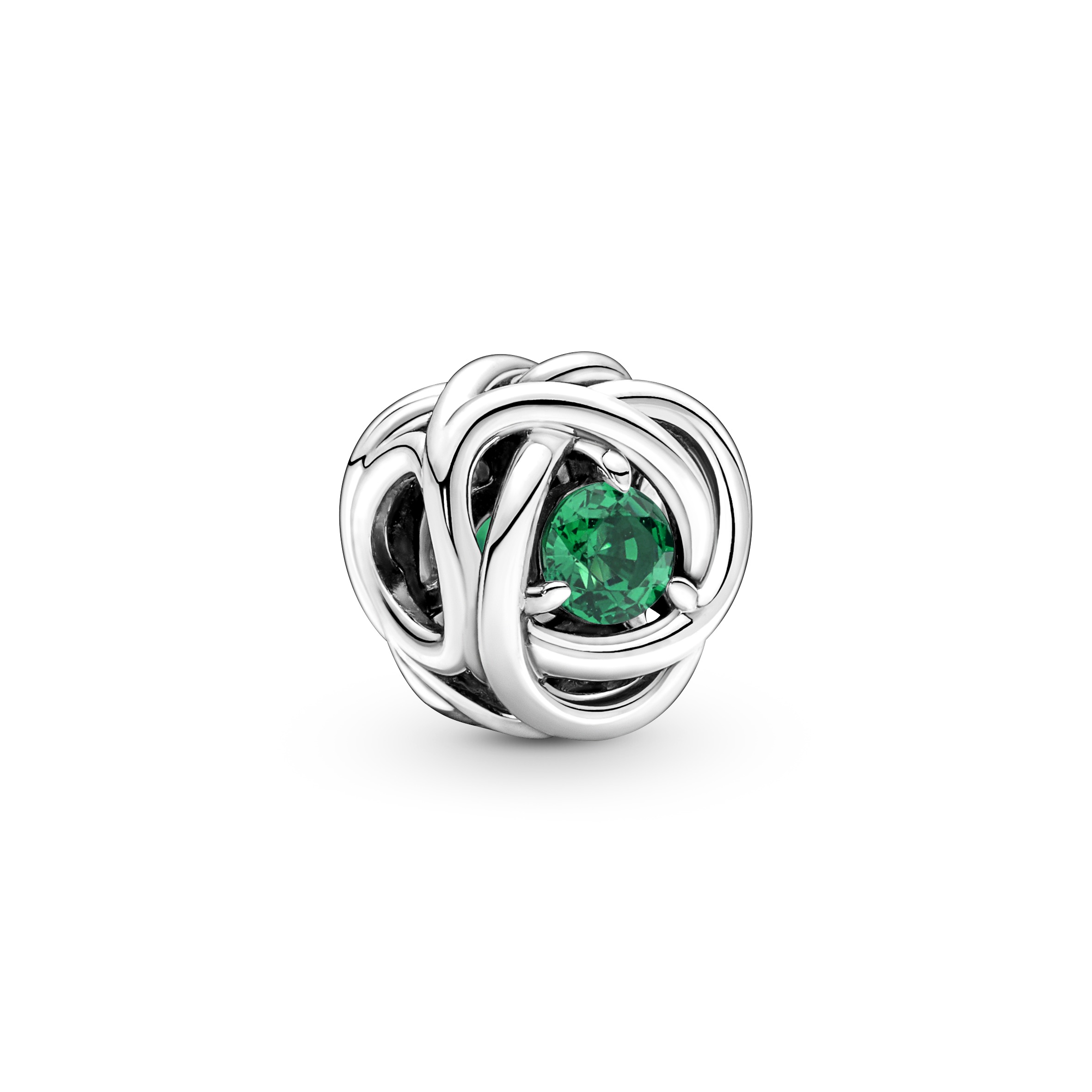Aggiungi un tocco di colore ai tuoi bracciali e alle tue basi per charm preferite con questo Charm Cerchio Eterno Verde Scuro Maggio. Realizzato in Argento Sterling 925, il charm ha la forma di un simbolo dell’infinito intrecciato ed è decorato da un cristallo verde scuro creato dall’uomo al centro. Aggiungi questo gioiello che simboleggia l'eternità al tuo look per illuminare la tua composizione di charm.