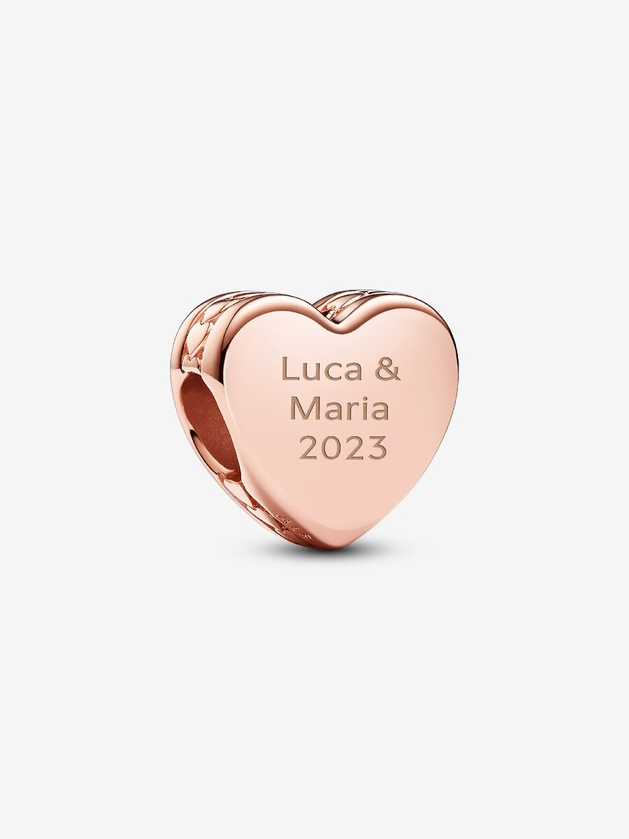Esprimi ciò che hai nel cuore con questo Charm Cuore da Incidere. Rifinito a mano e realizzato nell'esclusiva lega metallica placcata oro rosa 14k, questo gioiello può essere personalizzato aggiungendo un messaggio o un simbolo che lo rendano davvero tuo. Il charm è completato da una fila di cuori incisi su un lato che dona un tocco romantico. Indossalo sulla tua base per charm preferita o donalo a una persona che ami per sorprenderla con un gioiello unico e ricco di significato.