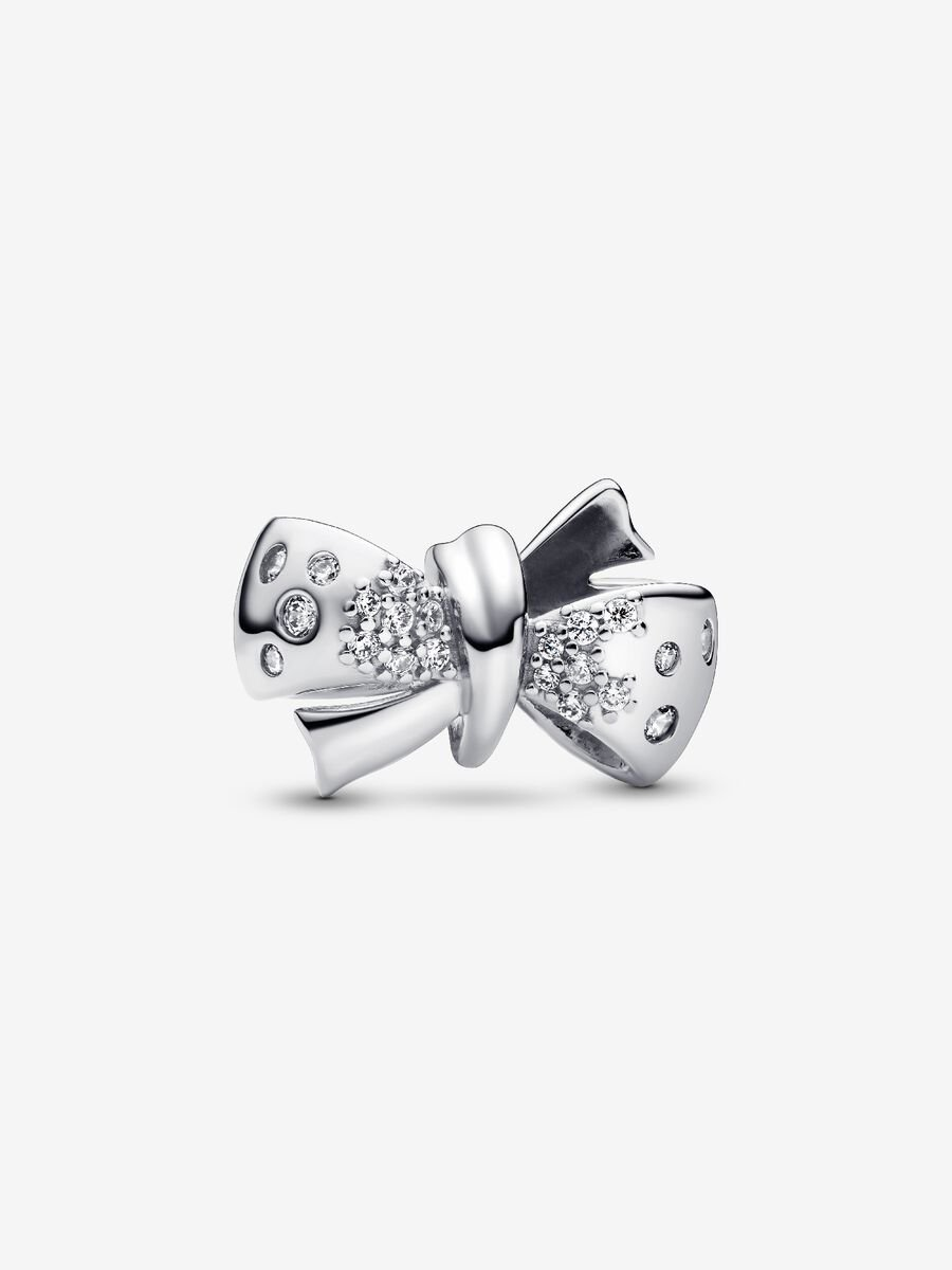 Completa il tuo look con questo charm a forma di fiocco decorato da pietre luminose. Perfetto da indossare con outfit casual o in occasioni speciali, il fiocco è un motivo simbolico che aggiunge un tocco unico ai look di tutti i giorni.