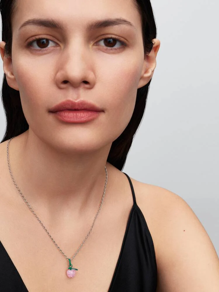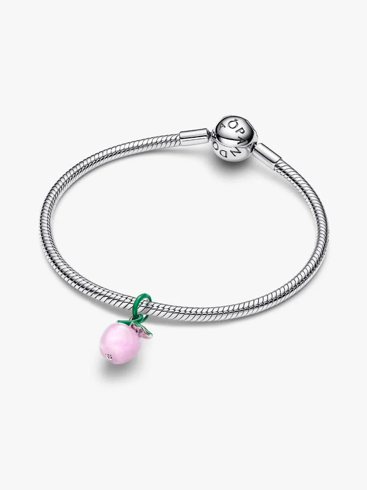 Un tocco di colore, un simbolo senza tempo. Realizzato in Argento Sterling 925 con dettagli in smalto rosa e verde, questo charm pendente è un dolce simbolo di saggezza e bellezza che nasce dalla natura.
