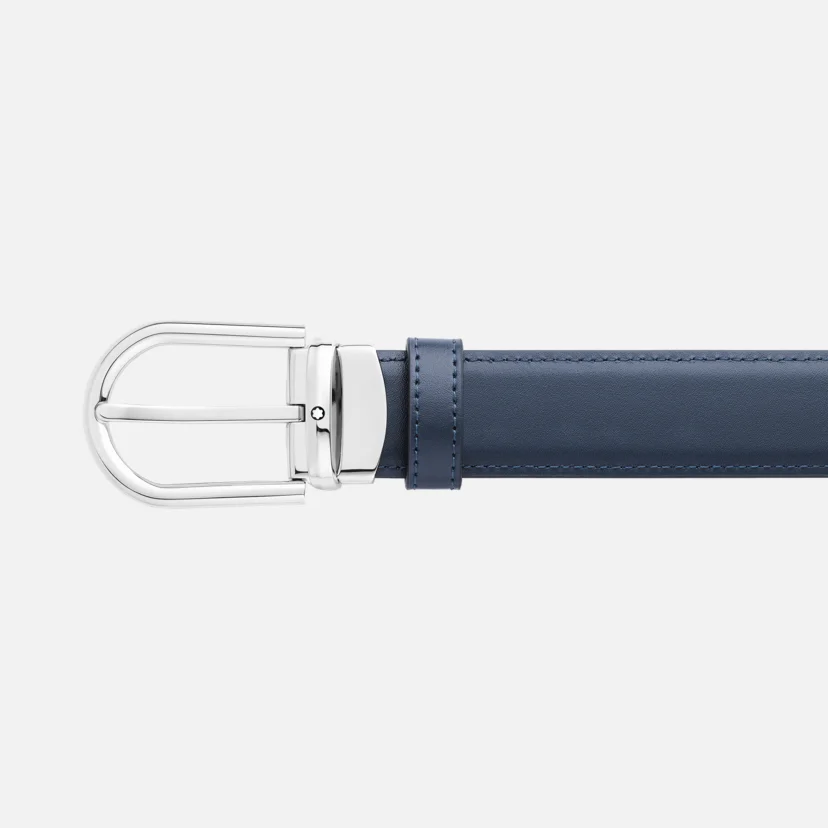 Cintura Montblanc Reversibile in Pelle Nera/Blu 30 Mm con Fibbia a Ferro di Cavallo