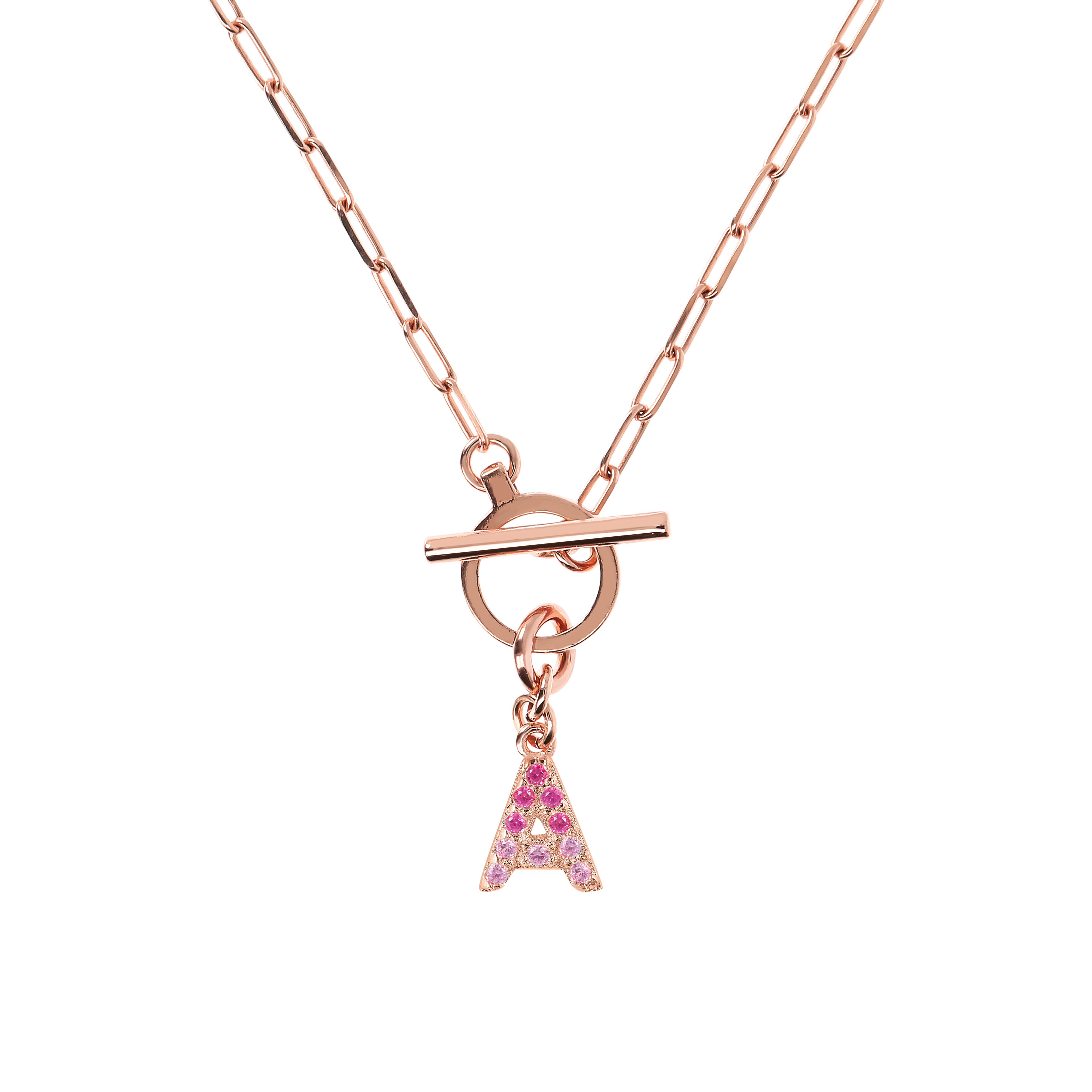 Collana Catena Forzatina Bronzallure con Pendente Lettera Pavè in Cubic Zirconia