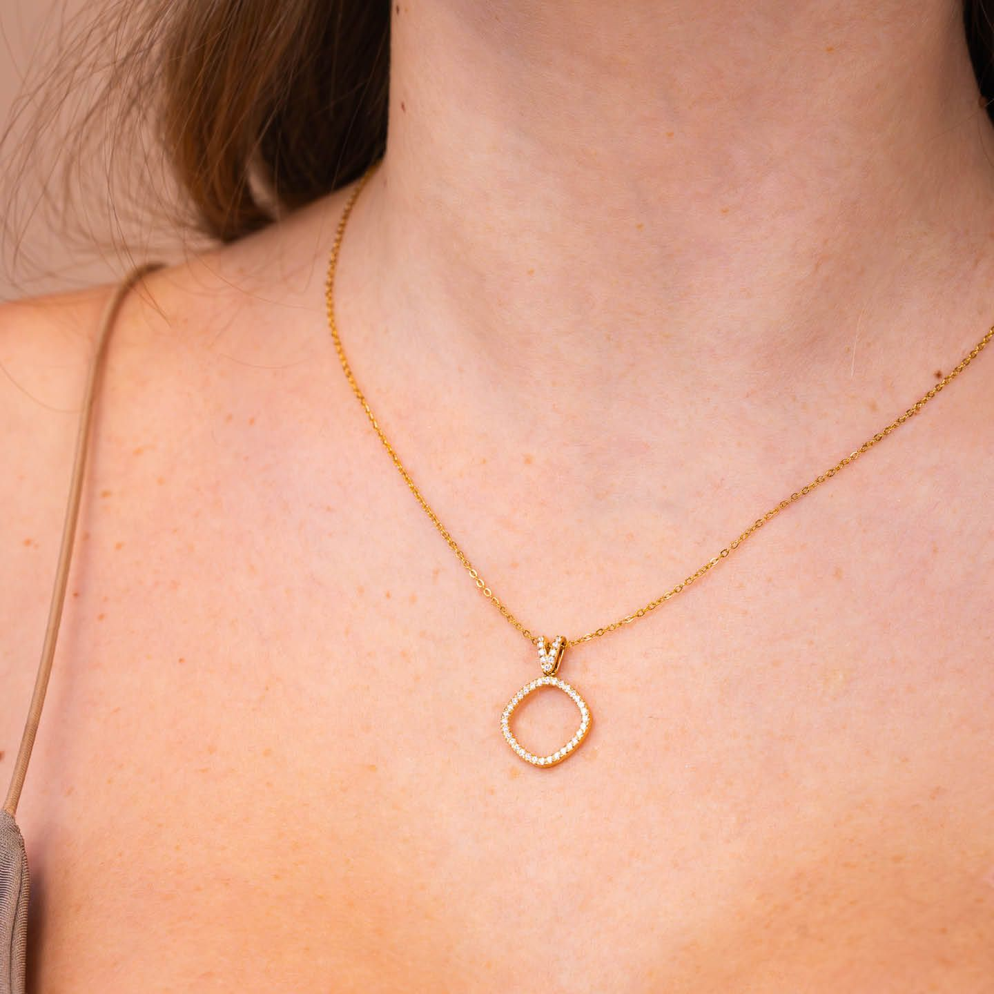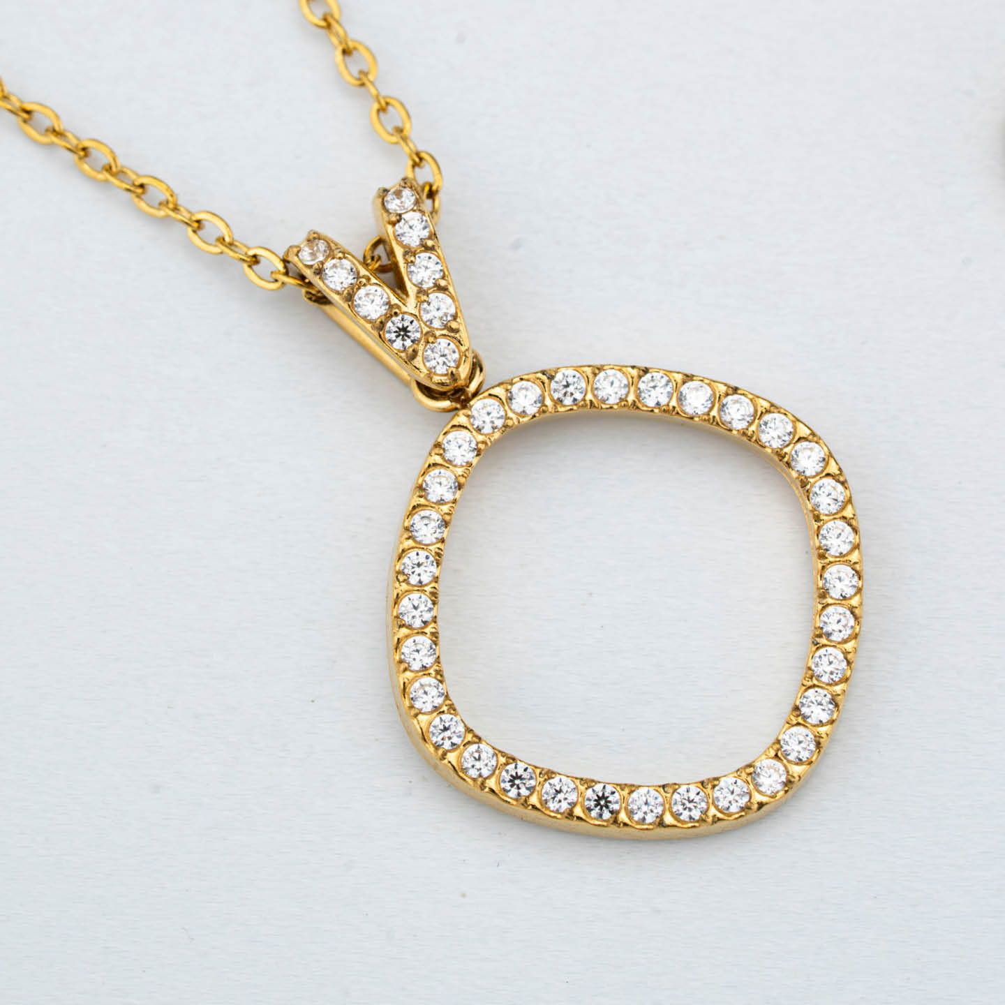 Collana Donna Boccadamo in Acciaio Placcato Oro Giallo con Quadrato di Zirconi Bianchi