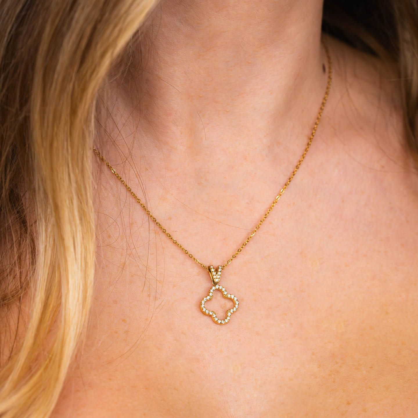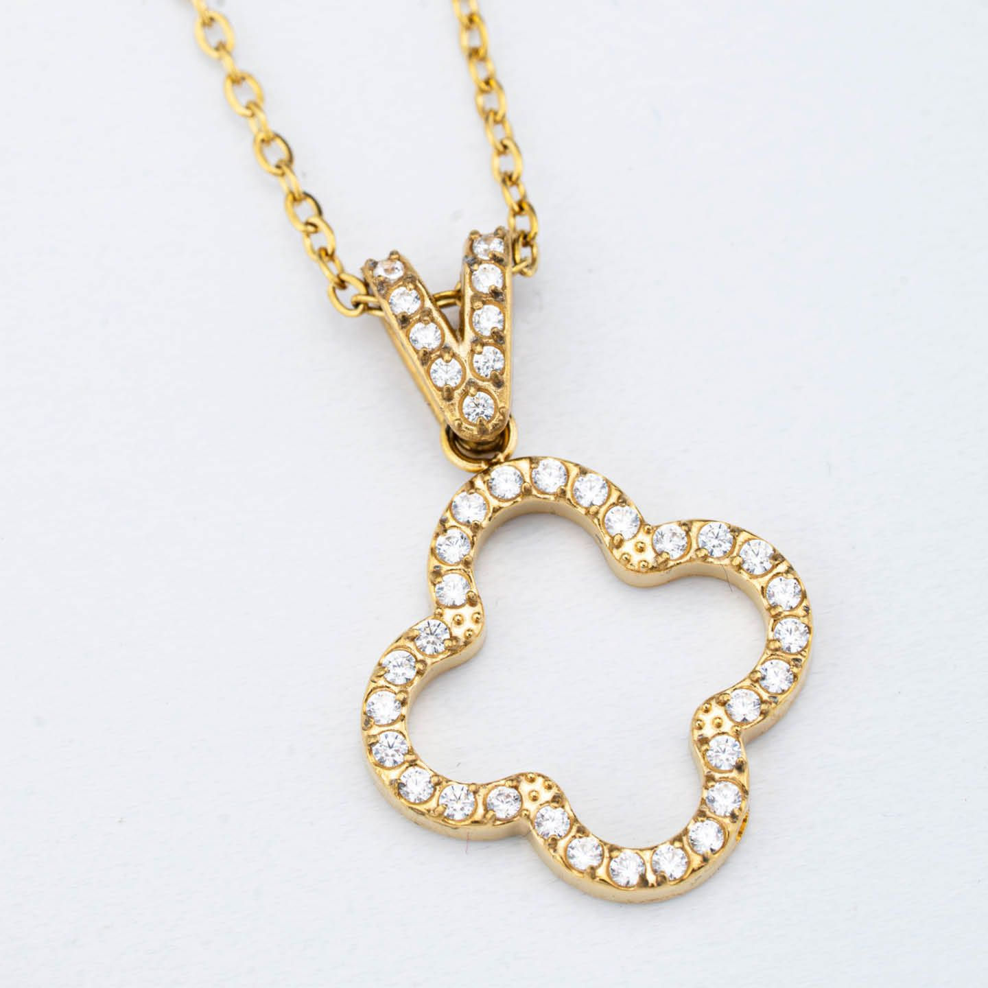Collana Donna Boccadamo in Acciaio Placcato Oro Giallo con Quadrifoglio di Zirconi Bianchi