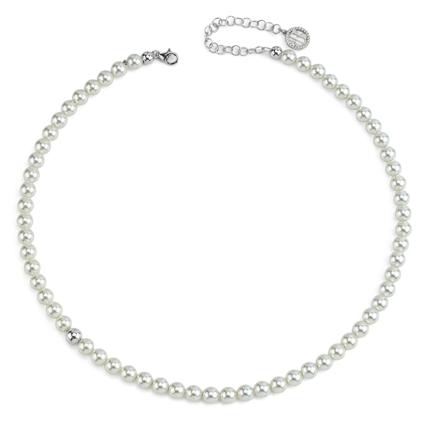 Collana Donna Boccadamo in Argento con Filo di Perle Medie e Boule Laterale