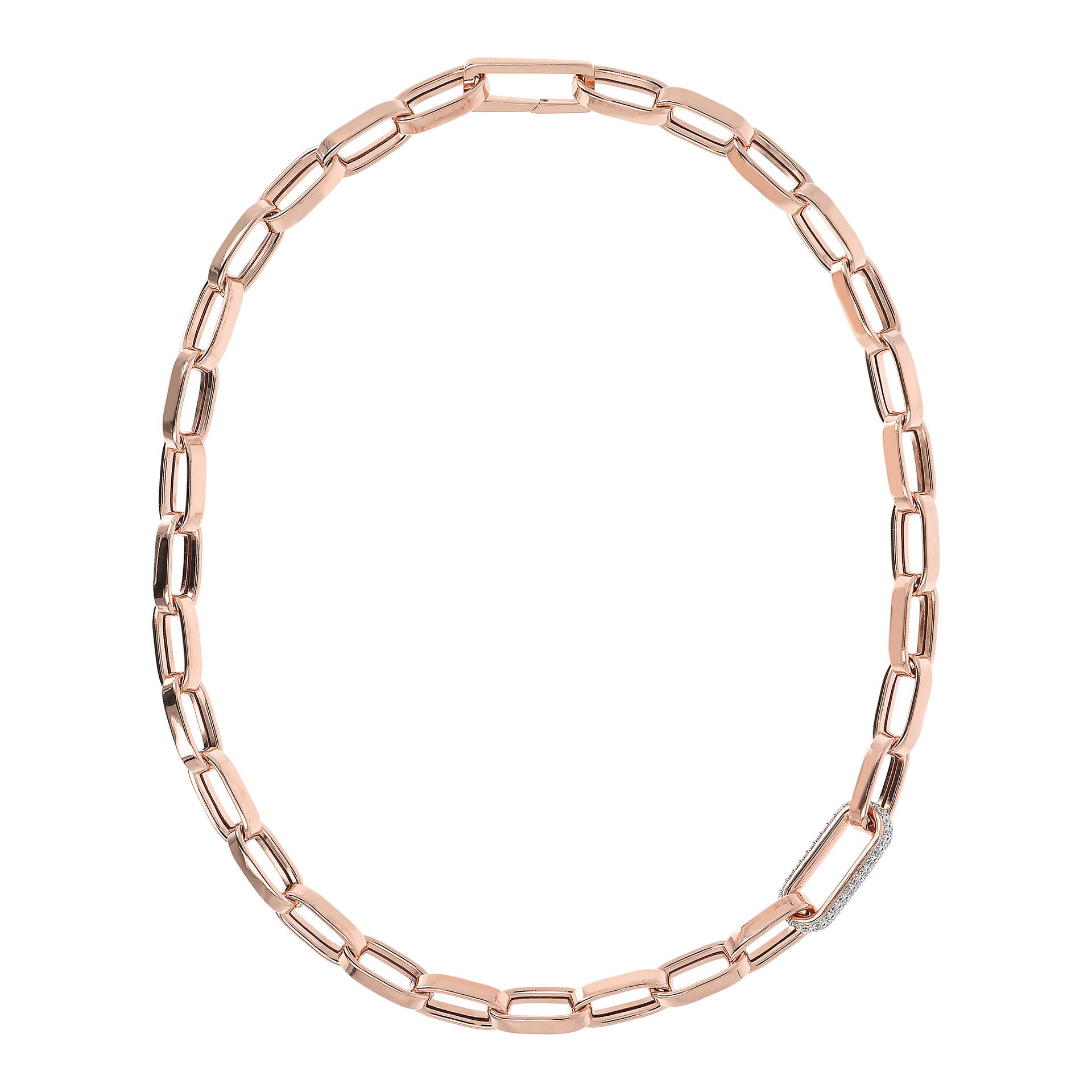 Collana lunga Bronzallure realizzata in lega Golden Rosè, placcata oro rosa 18kt, con catena forzatina spessa impreziosita da un dettaglio pavè in cubic zirconia di colore bianco