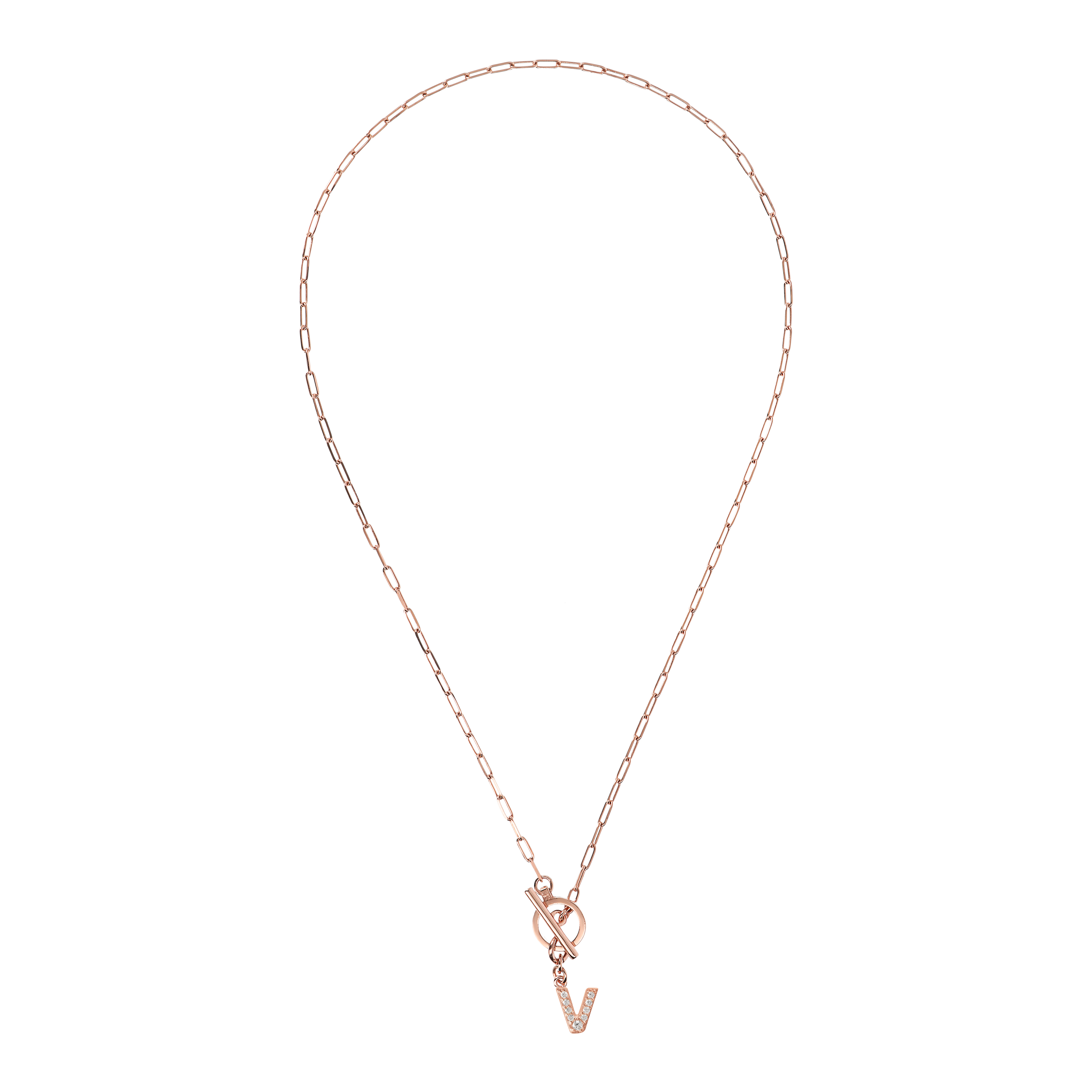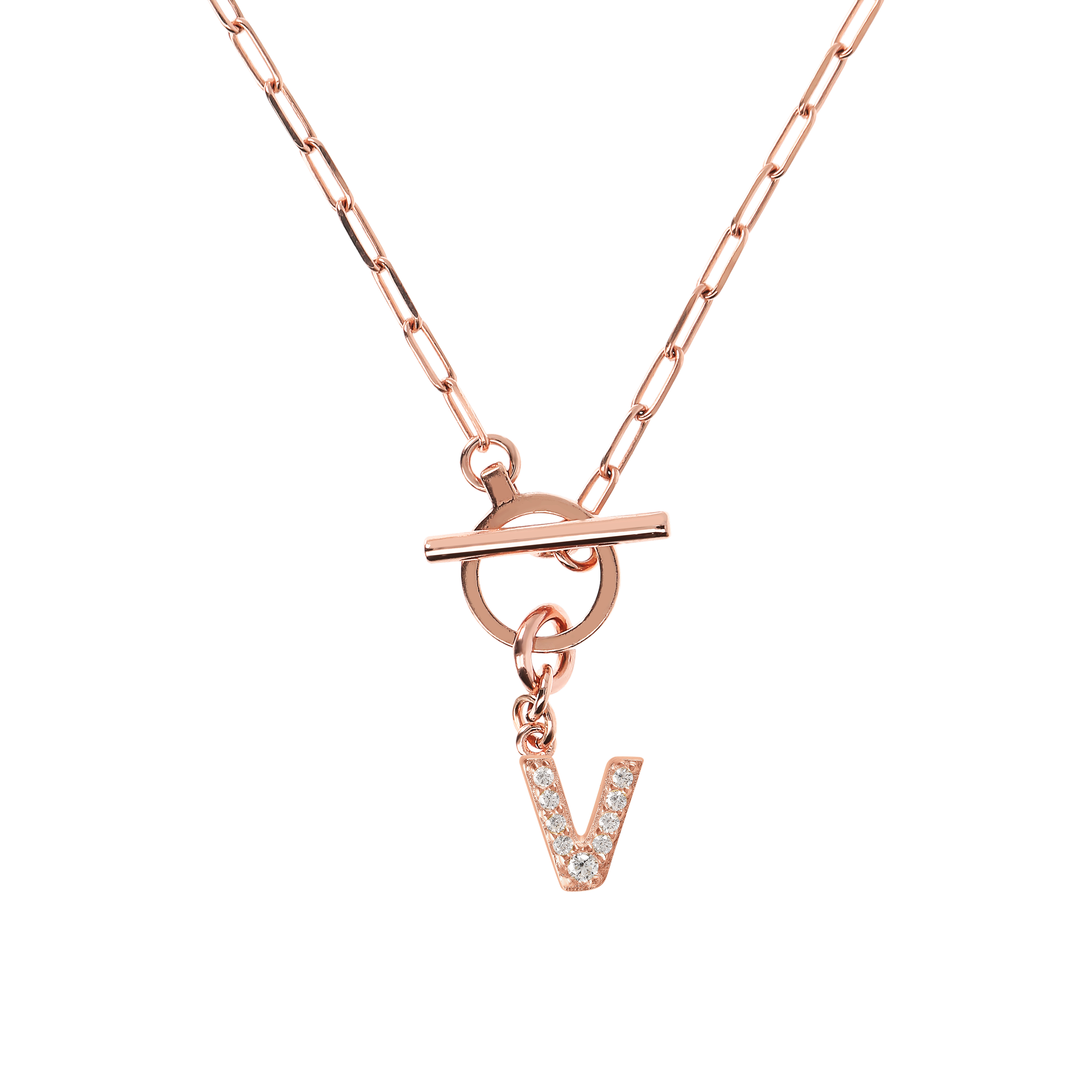 Collana Bronzallure realizzata in lega Golden Rosè, placcata oro rosa 18kt, con catena forzatina allungata paperclip e pendente lettera in pavè di cubic zirconia, qualità luminosa