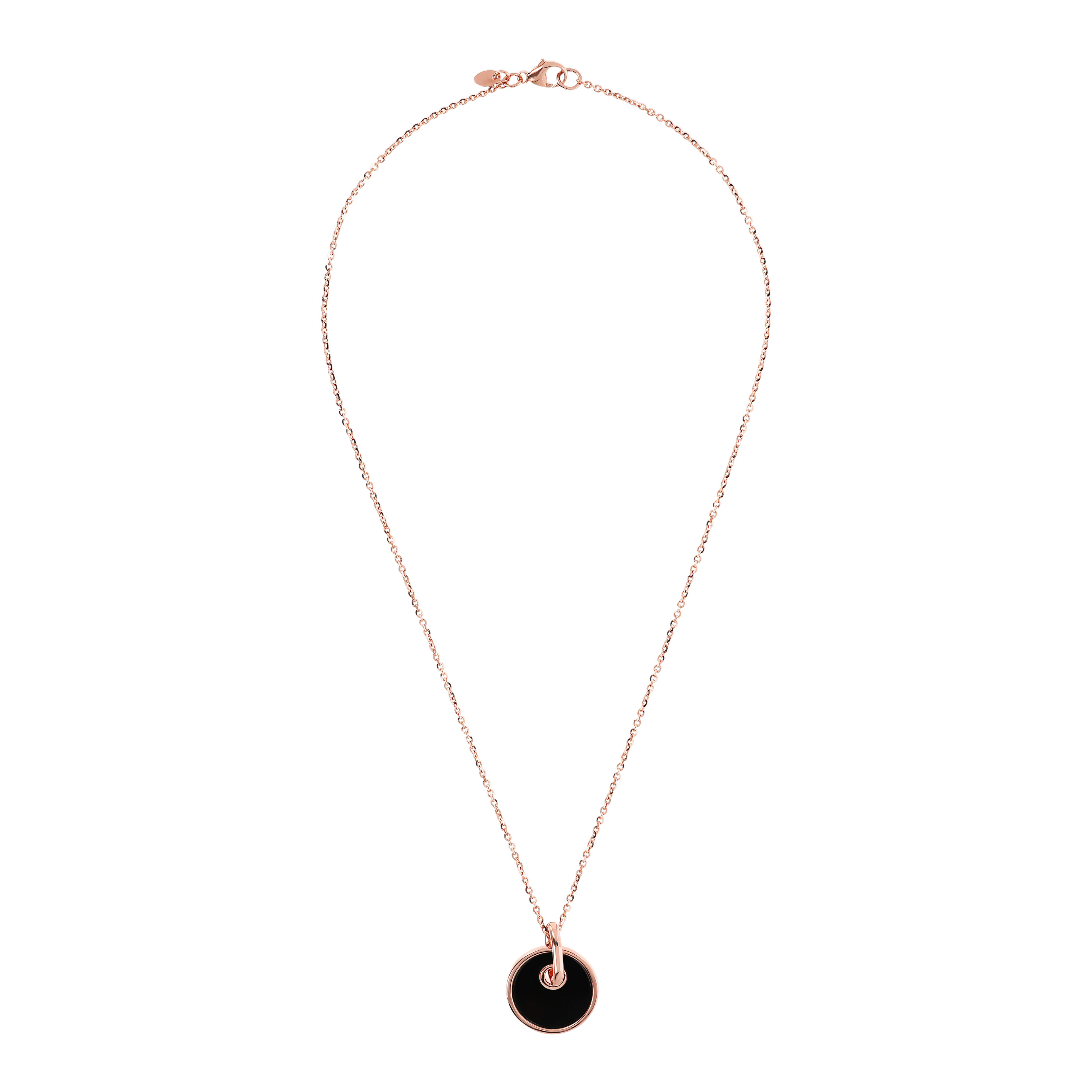 Collana Bronzallure realizzata in lega Golden Rosè, placcata oro rosa 18kt con pendente a bottone in pietra naturale piatta montato su base placcata oro rosa 18kt