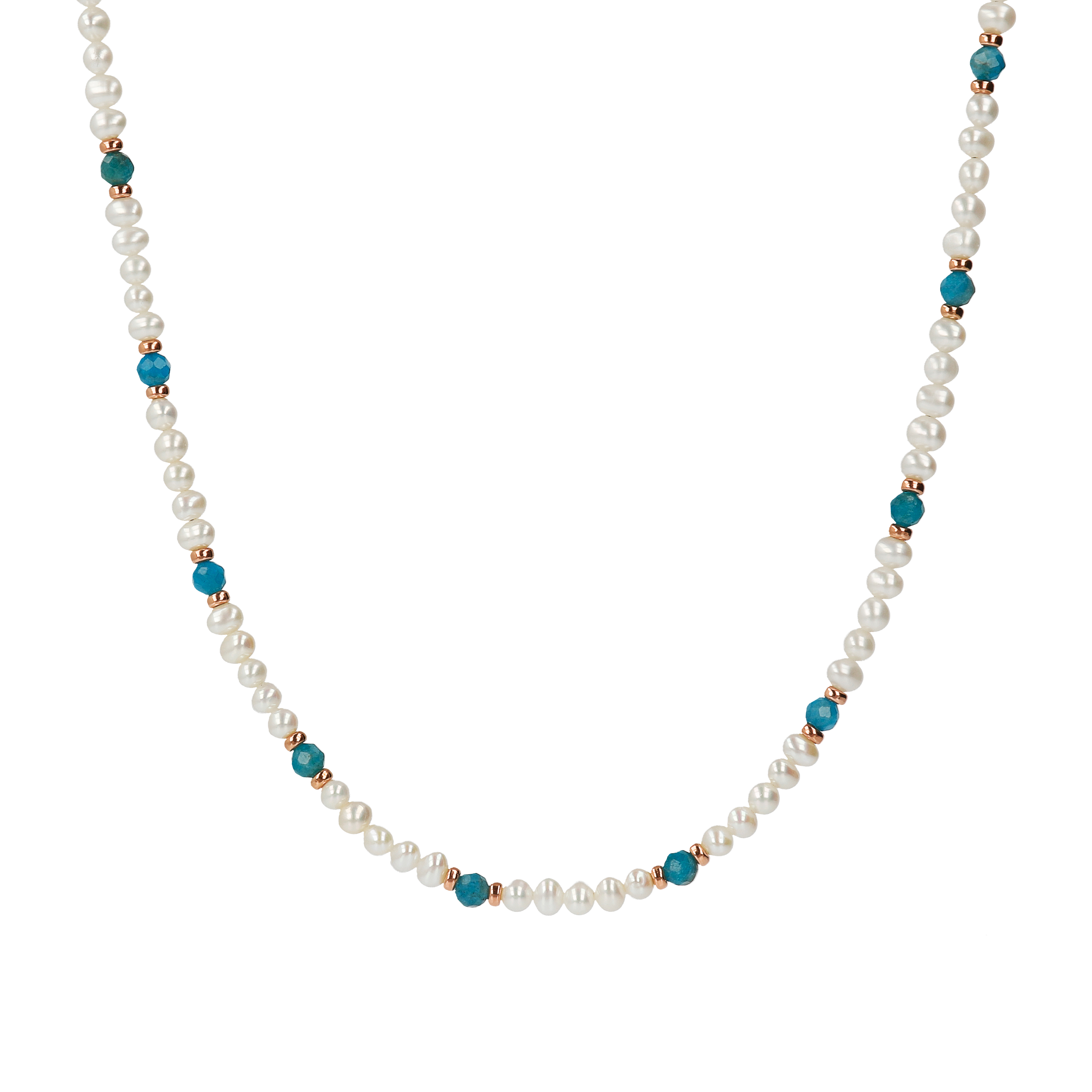 Collana girocollo Bronzallure realizzata su base Golden Rosè, placcato oro rosa 18kt, impreziosita da piccole pietre naturali sfaccettate (4 mm) alternate a perle coltivate d'acqua dolce con diametro...