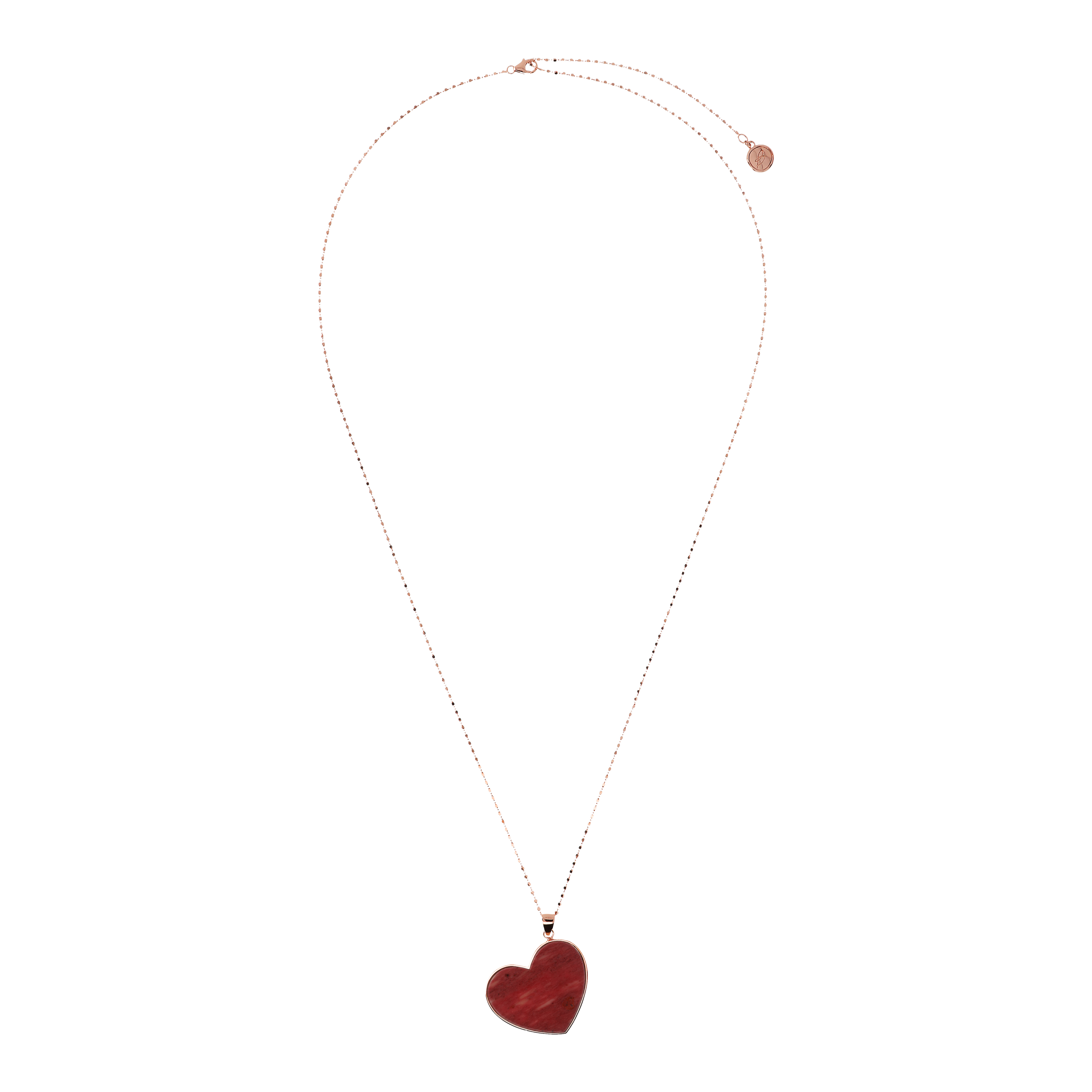 Collana Bronzallure realizzata in lega Golden Rosè, placcata oro rosa 18kt, con catena a cubetti impreziosita da un pendente a cuore grande in pietra naturale, chiusura a moschettone con extender.