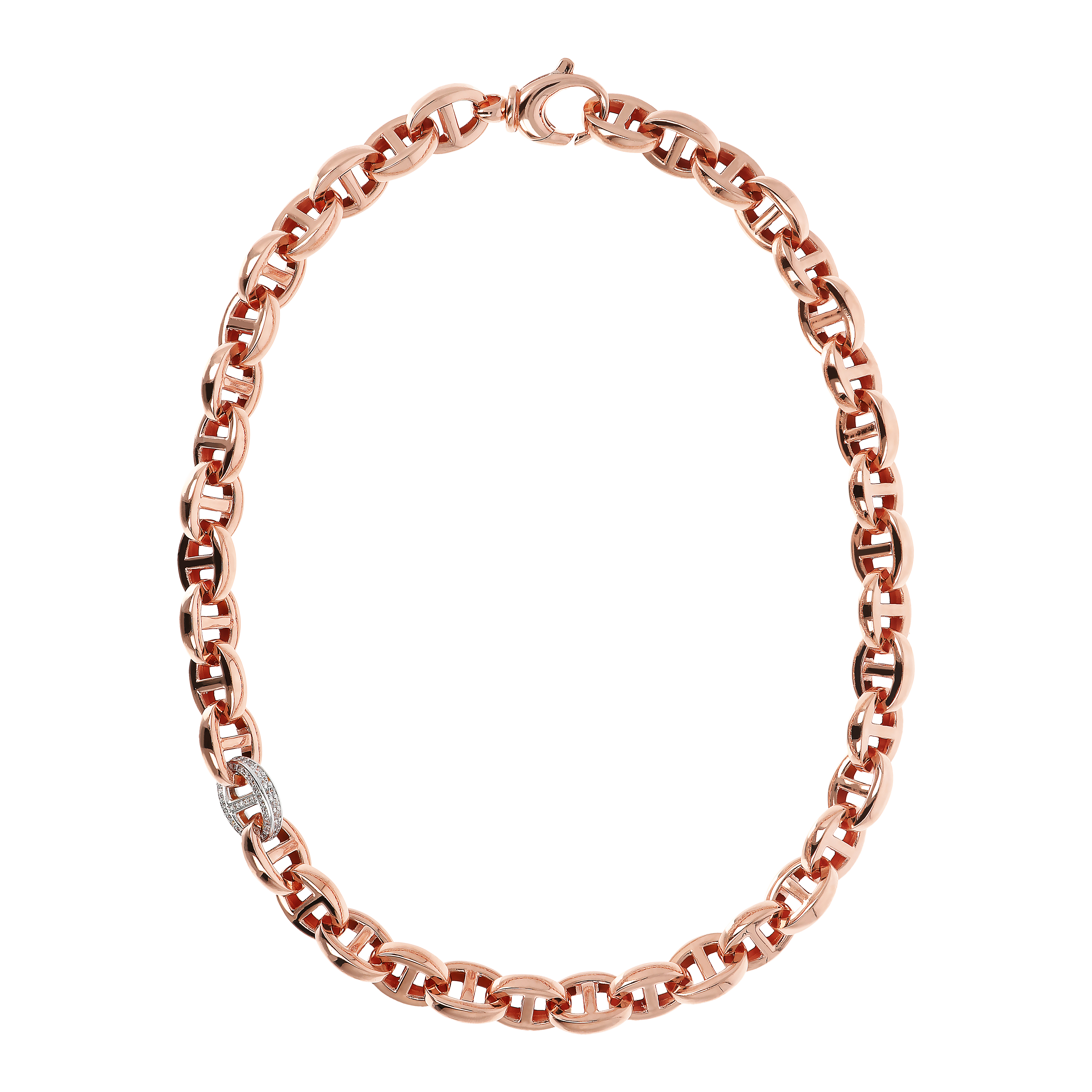 Collana Bronzallure realizzata in lega Golden Rosè, placcata oro rosa 18kt, con maglia marina con dettaglio pavè in cubic zirconia, con chiusura a moschettone....
