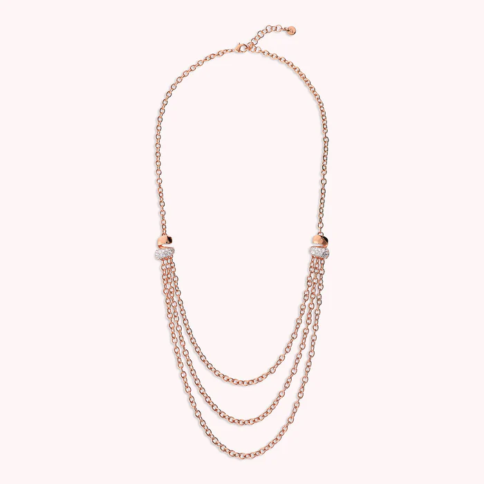 Collana Donna Bronzallure Multifilo Catena Rolò con Pavé in Cubic Zirconia