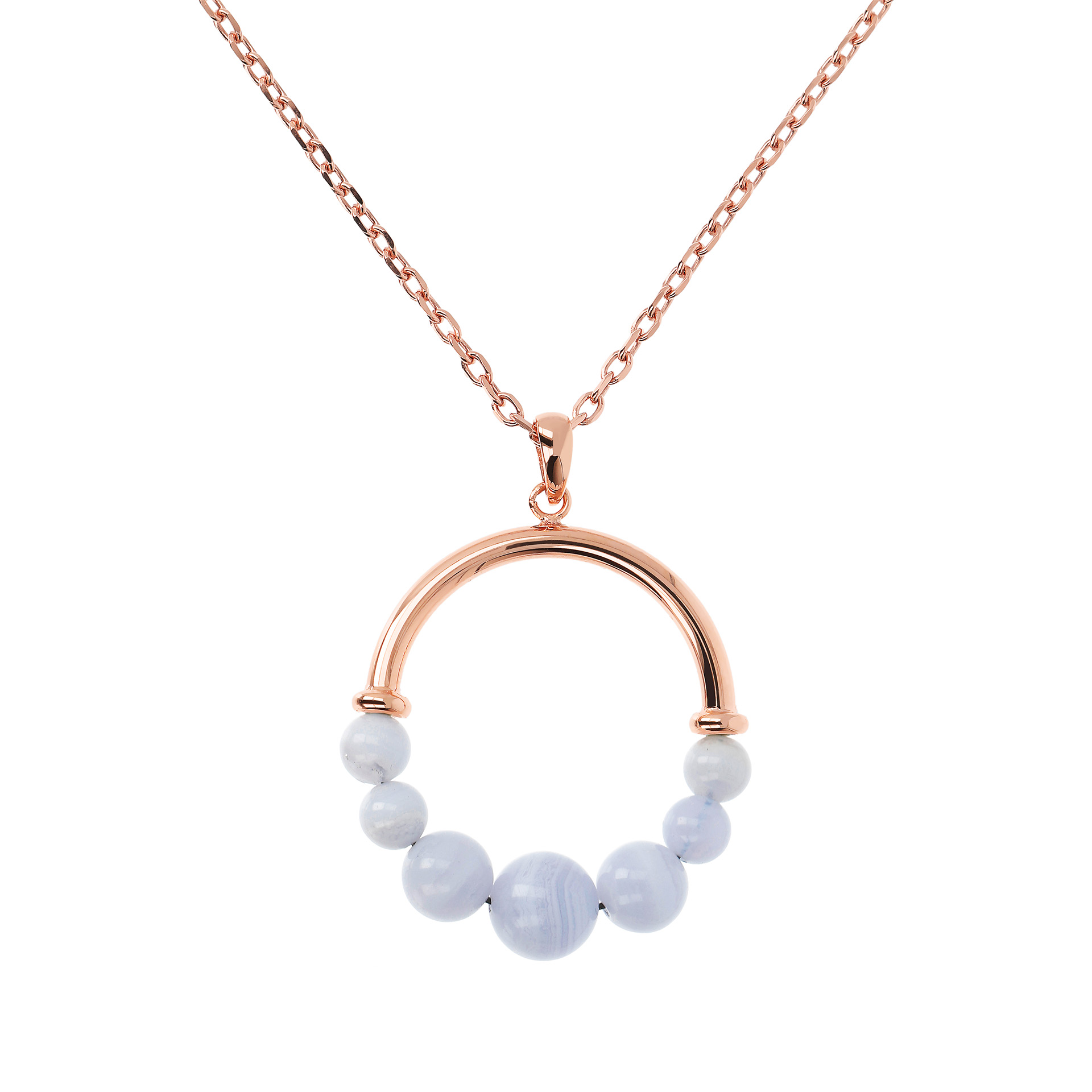 Collana Donna Catena Forzatina Bronzallure con Pendente Tondo in Pietra Naturale