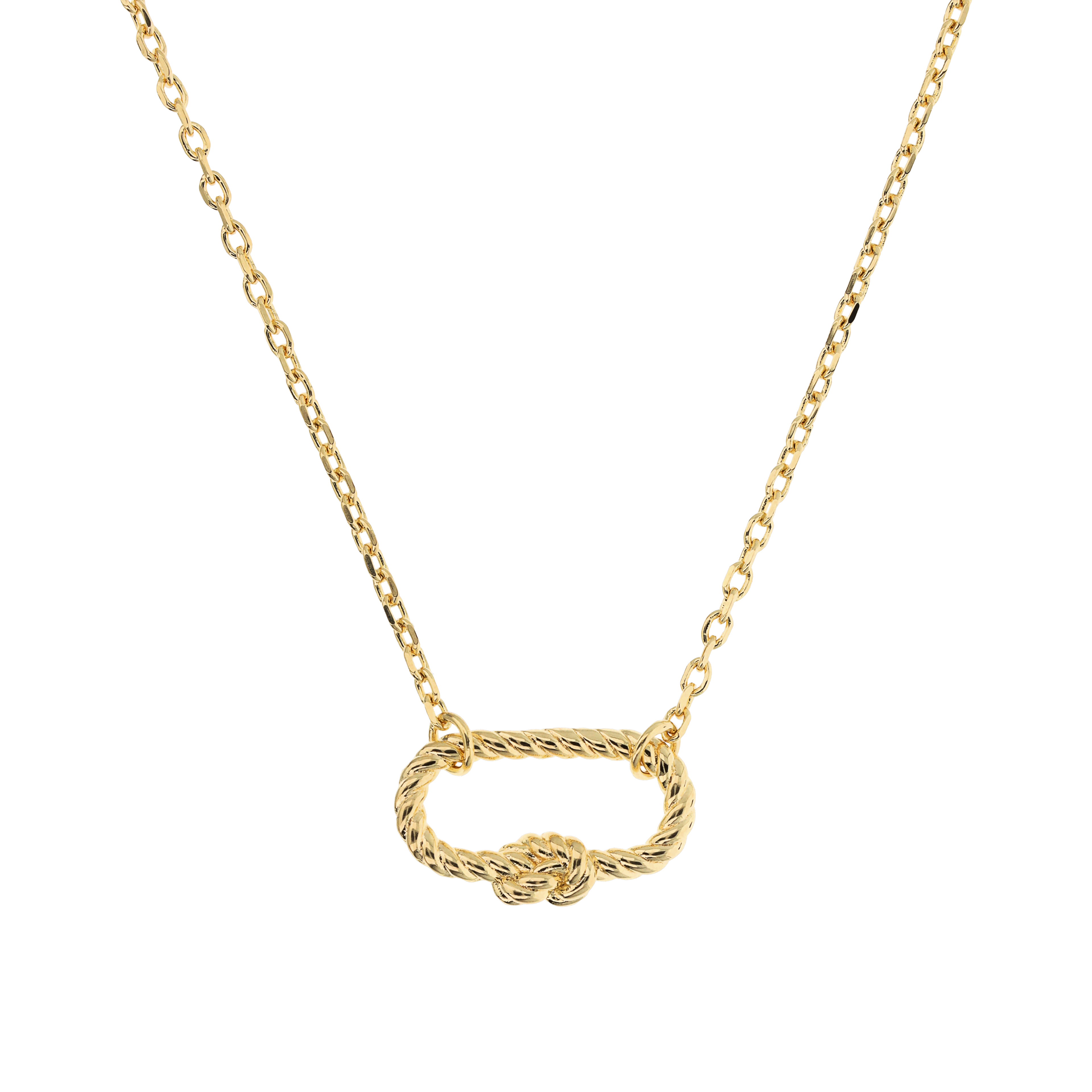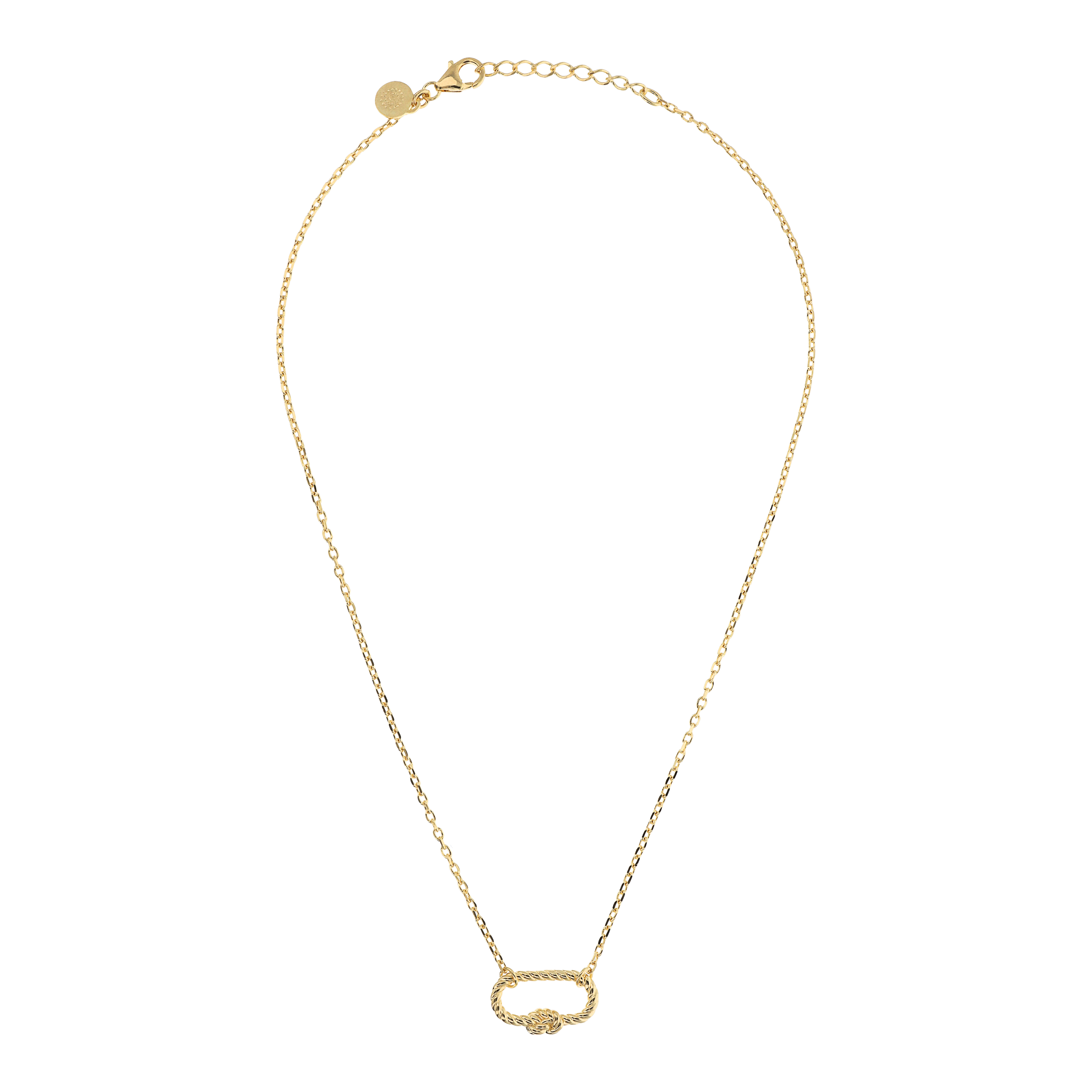 Collana Etrusca Gioielli montata su base Golden, placcata oro giallo 18kt, con catena rolo impreziosita da un pendente ovale dalla texture corda con nodo