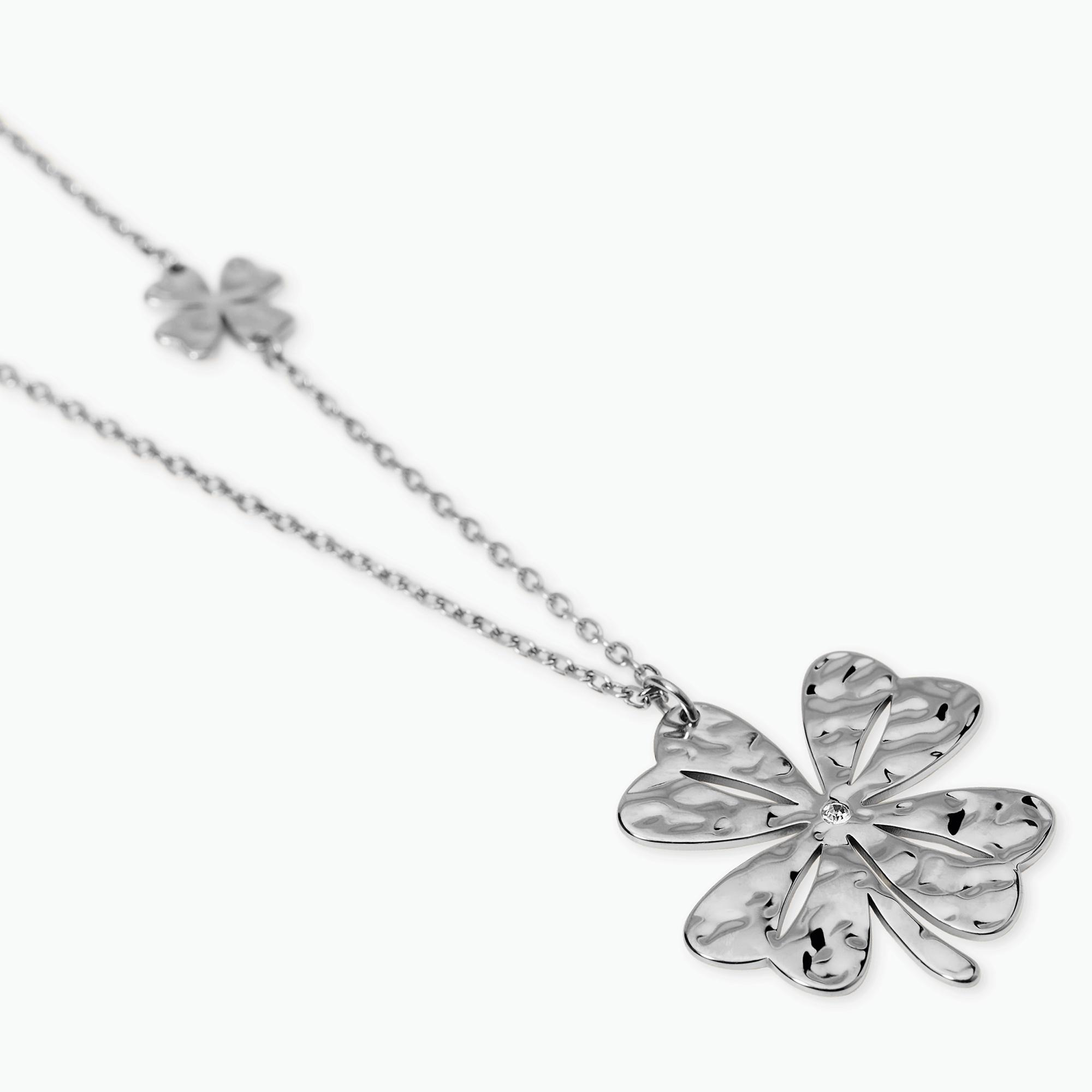Collana Donna Kidult con Quadrifoglio Martellato Argentato