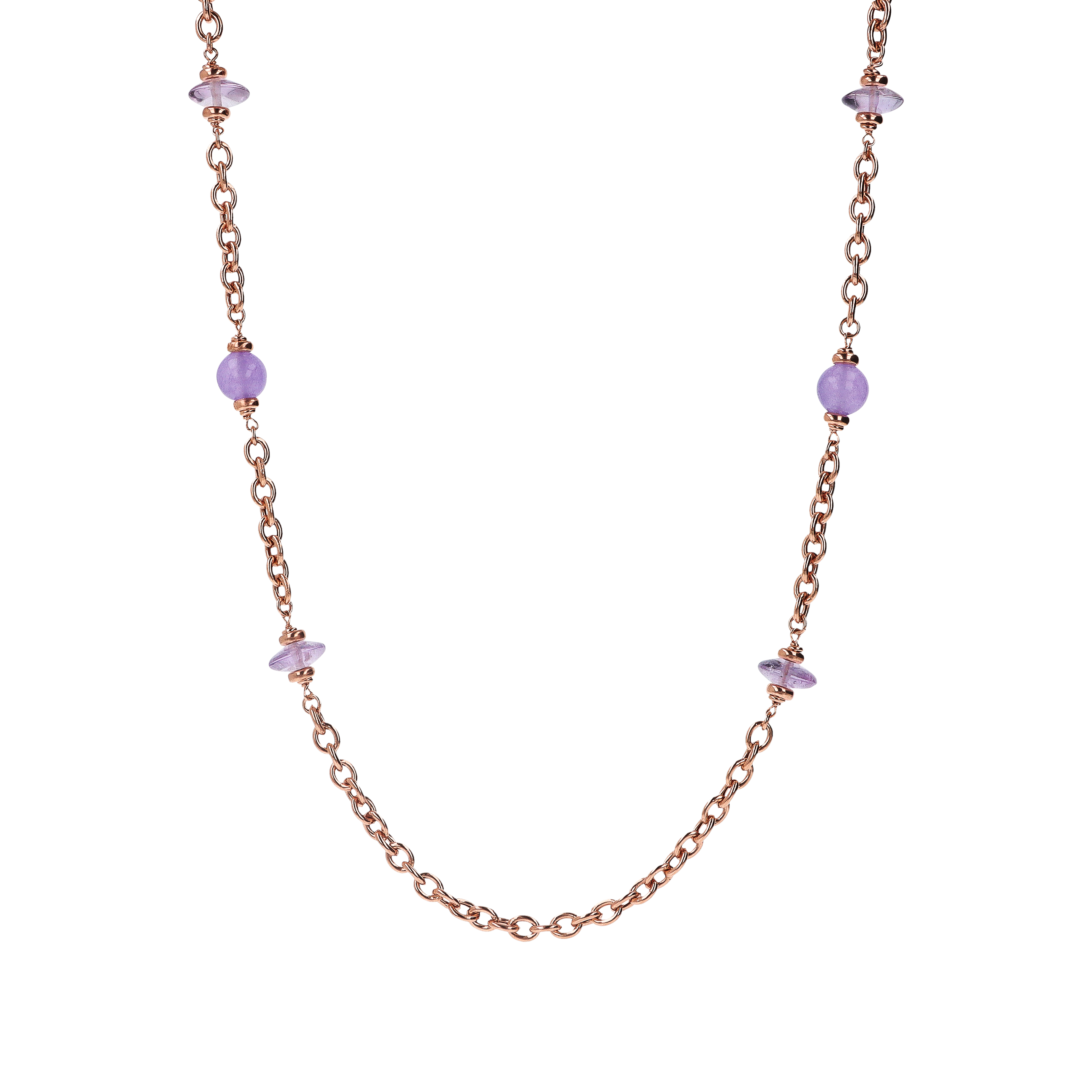 Collana Donna Lunga Bronzallure Catena Rolò con Station di Sfere E Rondelle in Pietra Naturale