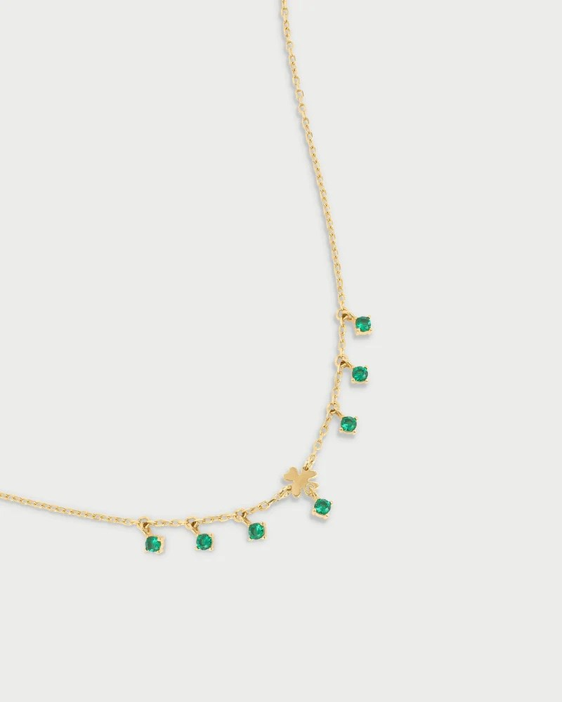 Collana Donna Rue Des Mille Essence in Argento pvd Oro con Quadrifoglio e Zirconi Verdi Pendenti