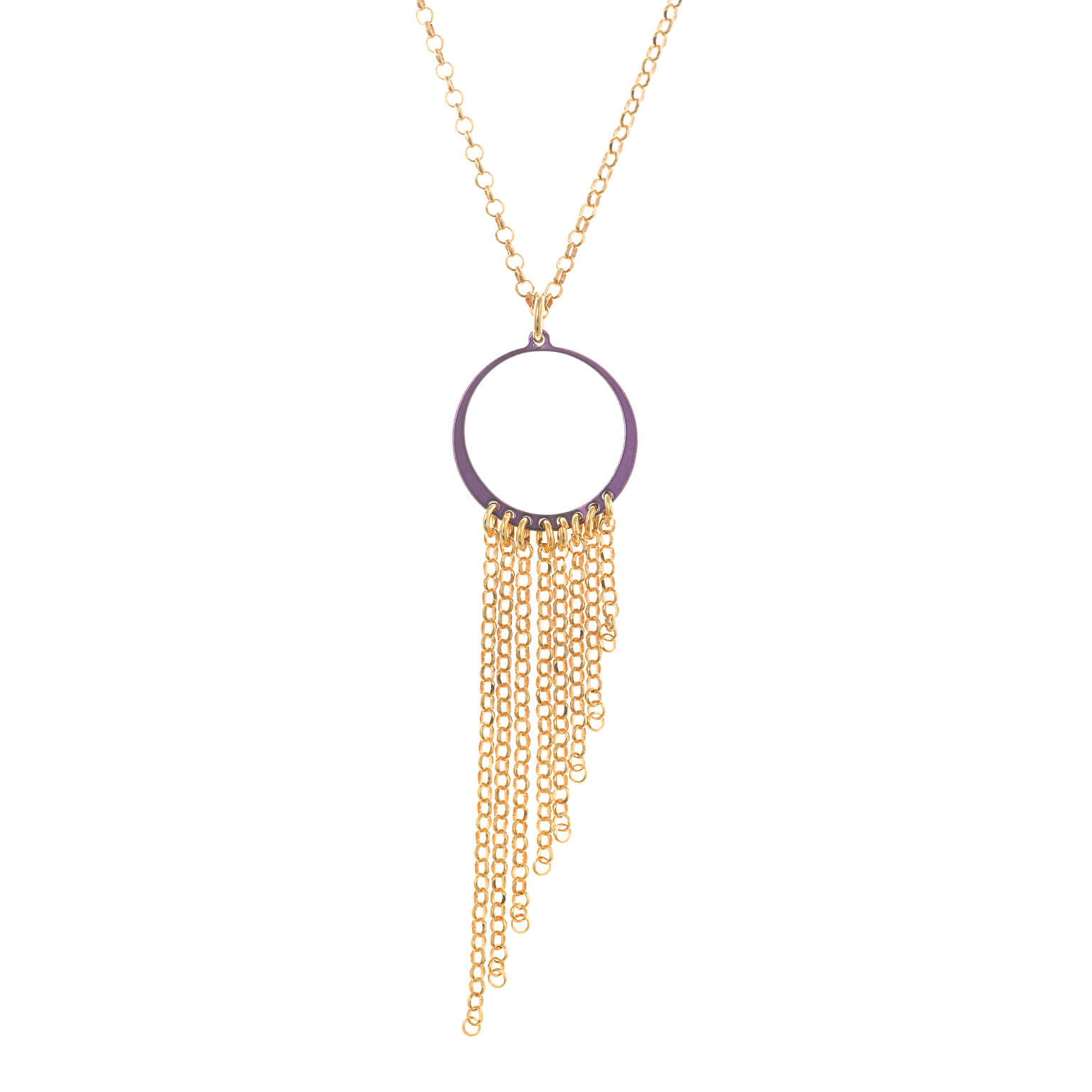 Anello pendente: placcato oro con smalto viola polacco ipoallergenico