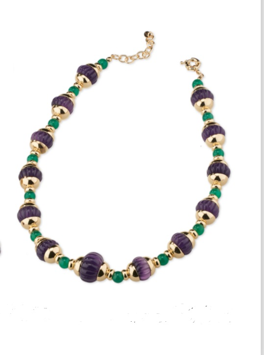 Collana Donna Sovrani in Ottone con Quarzo Verde e Viola
