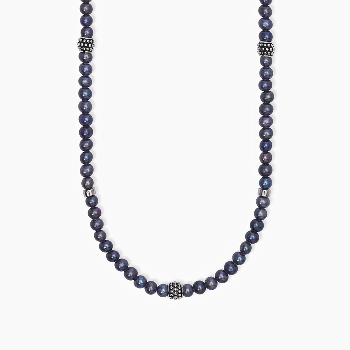 Collana in argento 925 rodiato con perle coltivate nere diametro 4.5/5 mm, lunghezza regolabile da 45 a 50 cm.