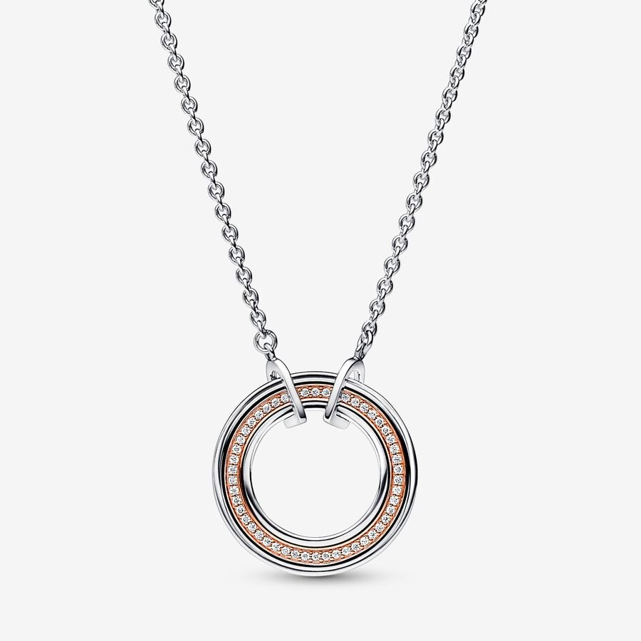 Collana Pandora Cerchio Bicolore Logo e Pavè