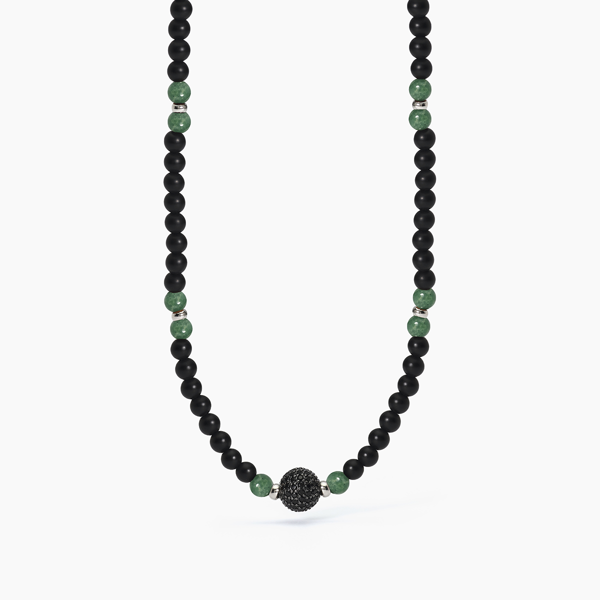 Collana Uomo Mabina Bohémien in Argento con Agata Nera e Giada Verde
