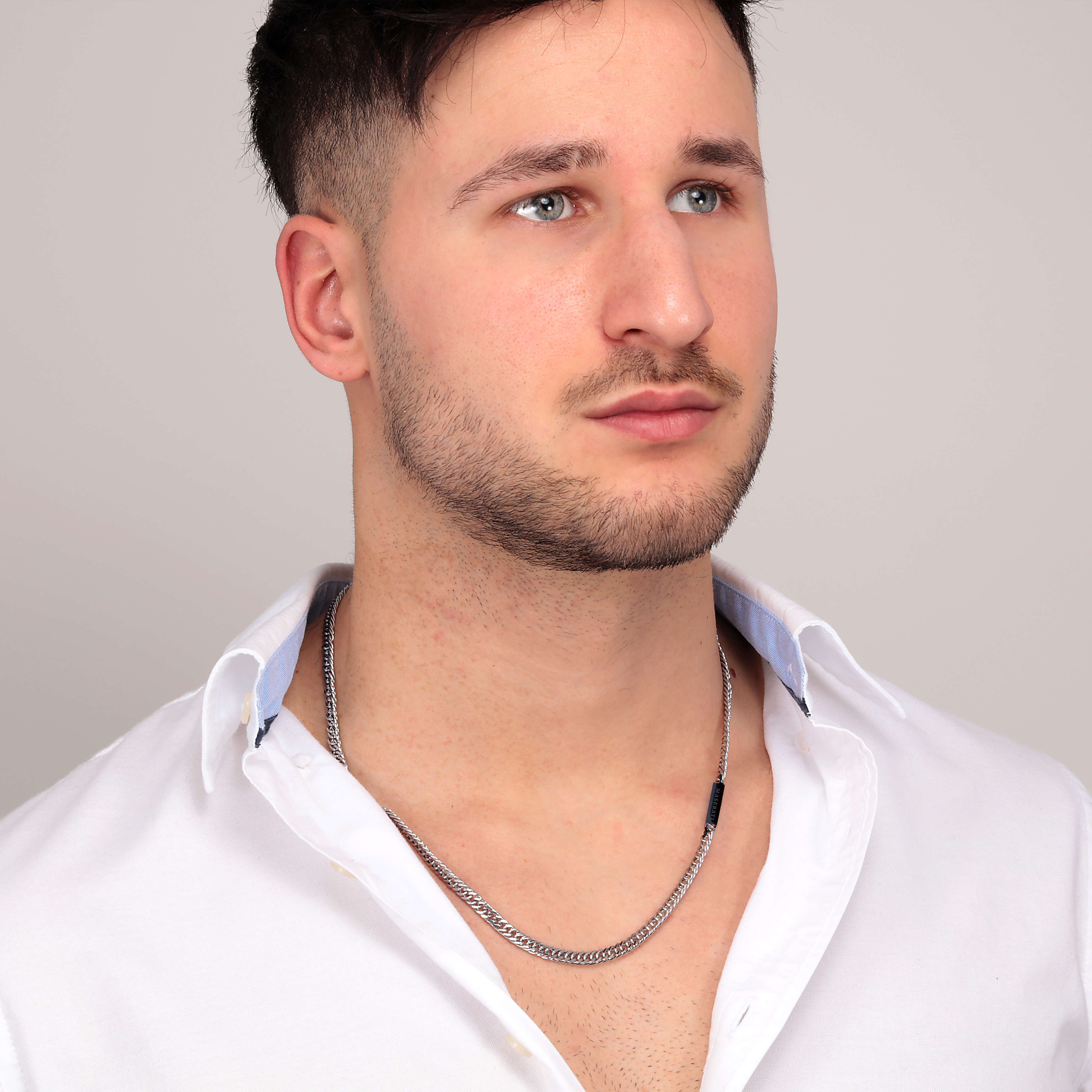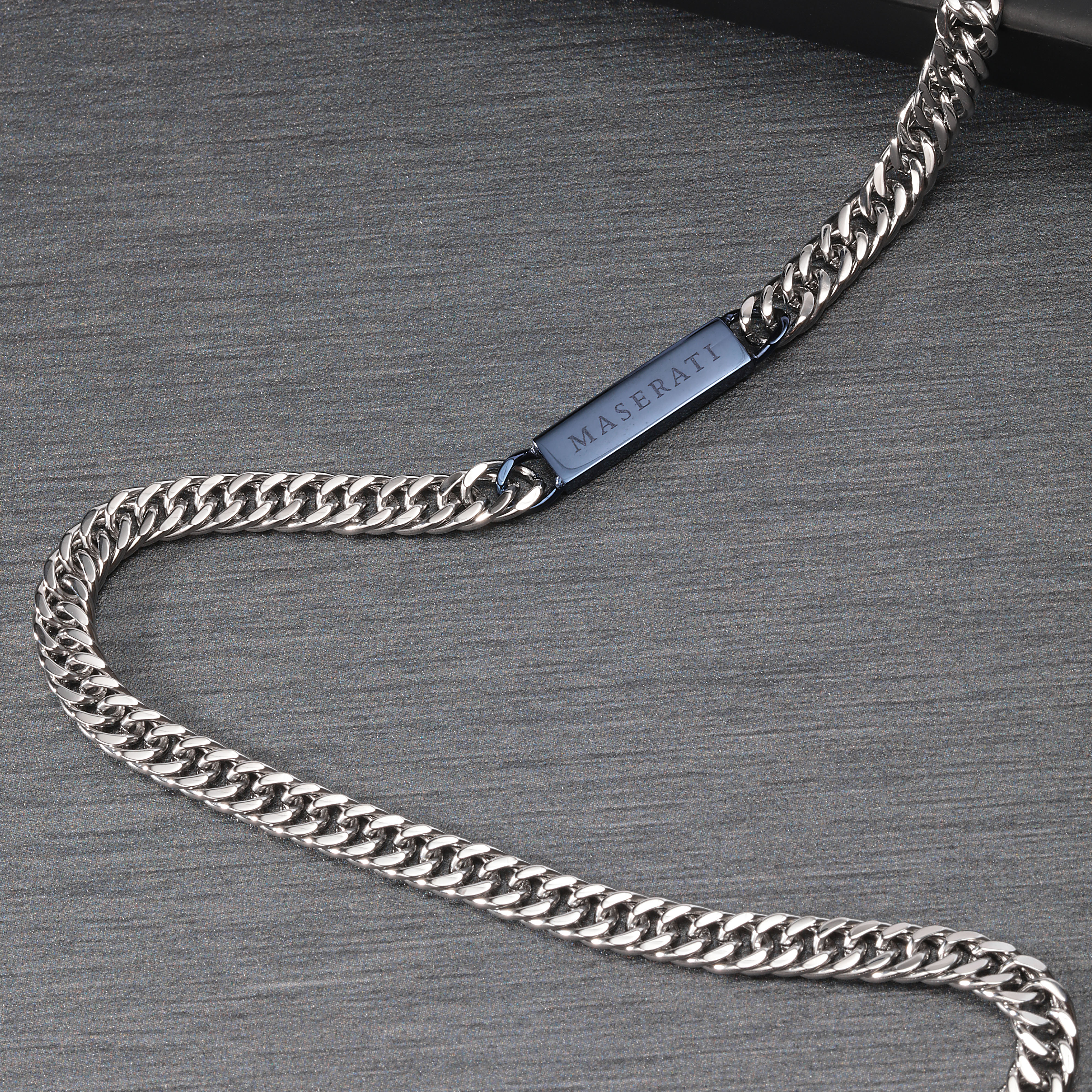 Collana Uomo Maserati Jewels Catena in Acciaio con Logo Blu