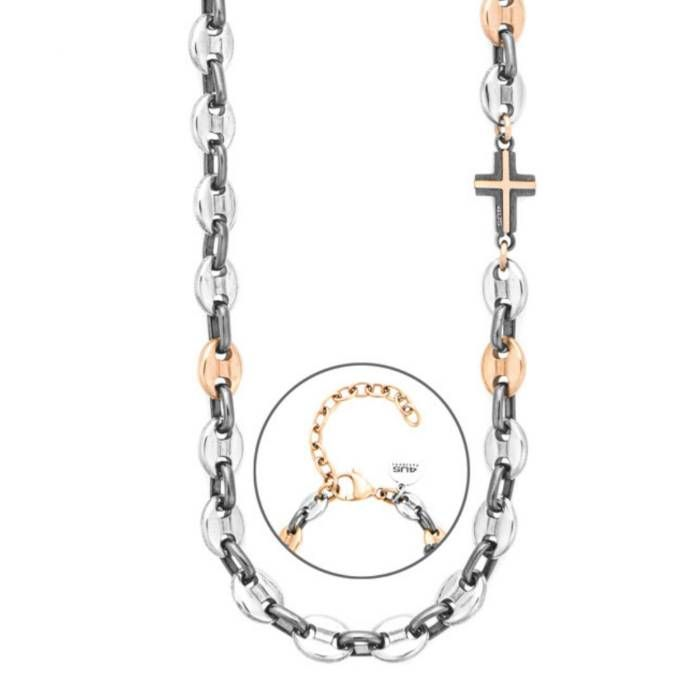 Collana Uomo Paciotti in Acciaio pvd Gun e Rosè con Croce