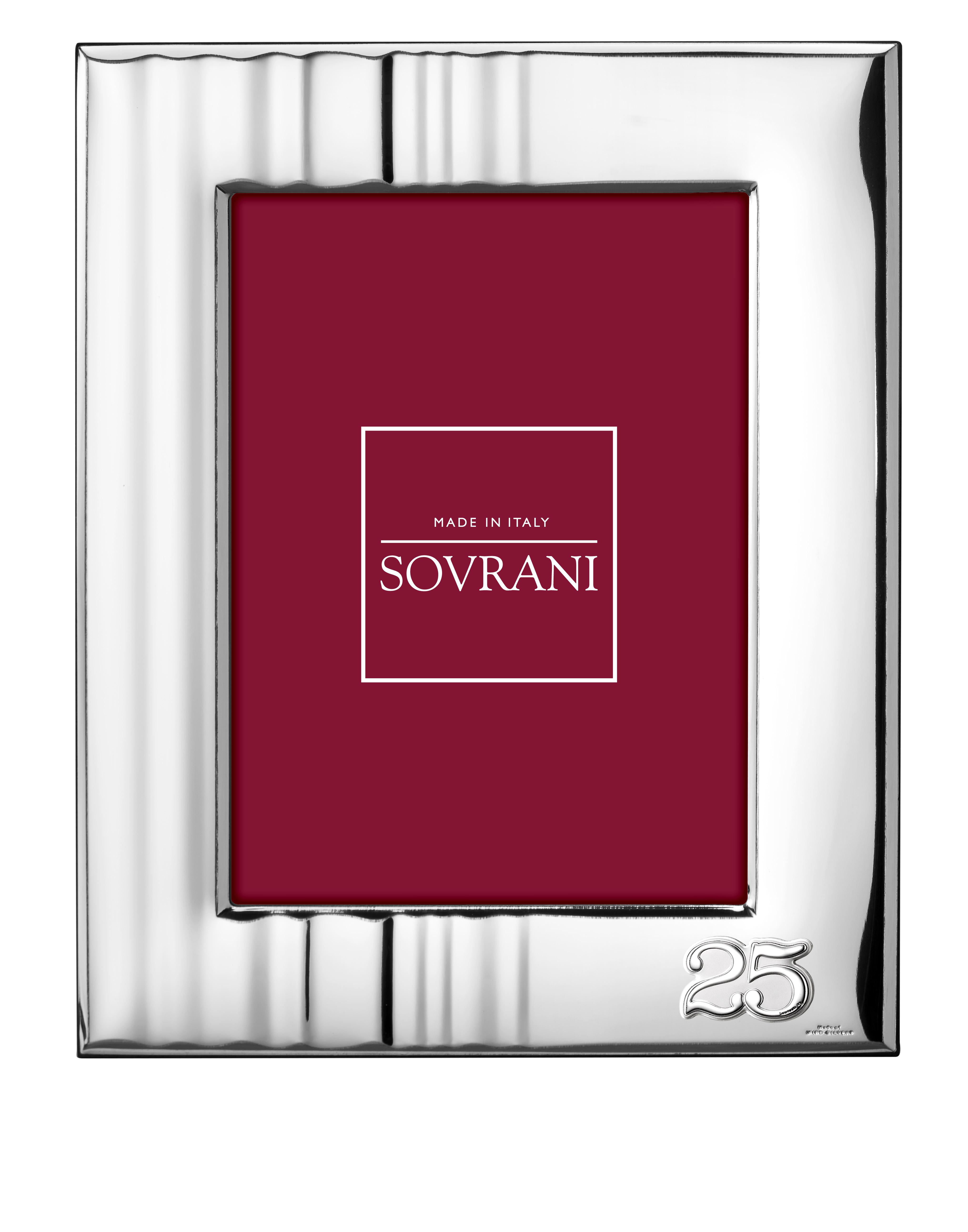 SOVRANI - CORNICE LUCIDA RETRO LEGNO 25° ANNIVERSARIO 15X20 - W1144 Cornice in Argento per 25° anniversario di matrimonio, con finitura lucida e retro in legno. Misura 15x20. La referenza è W1144