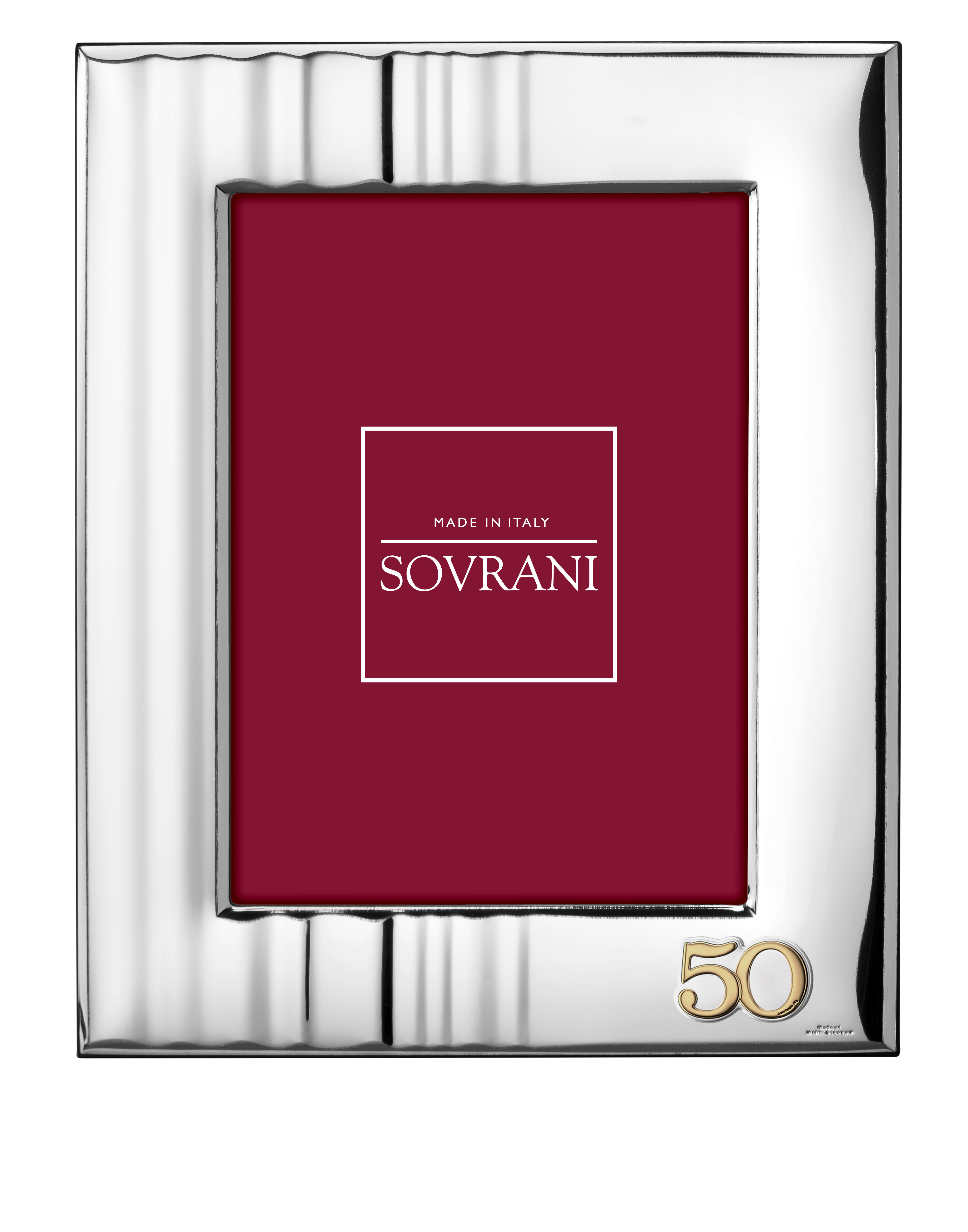 SOVRANI - CORNICE LUCIDA RETRO LEGNO 50° ANNIVERSARIO 15X20 - W1154 Cornice in Argento per 50° anniversario di Matrimonio, con finitura lucida e retro in legno. Misura15x20. La referenza è W1154