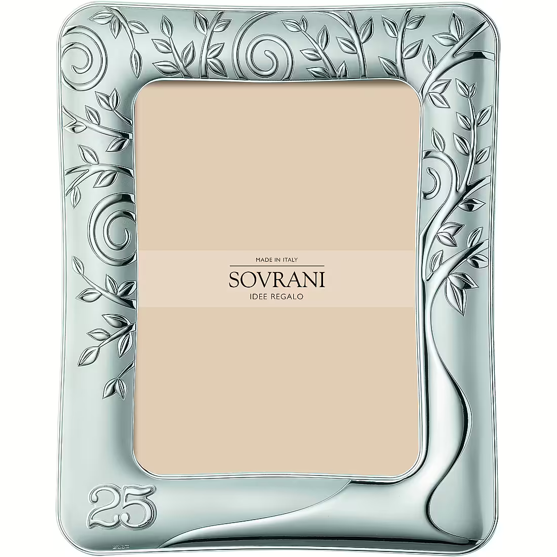 SOVRANI - CORNICE PORTAFOTO 25 ANNIVERSARIO E ALBERO DELLA VITA 18X24 - B707 Cornice portafoto di Sovrani. Portafoto martellato con decoro interno lucido/satinato. Misura 18x24. La referenza è B707