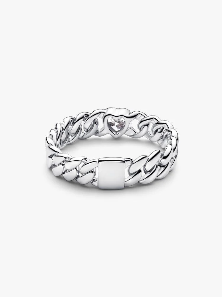 Anello Pandora Catena Maglia Cubana con Cuore